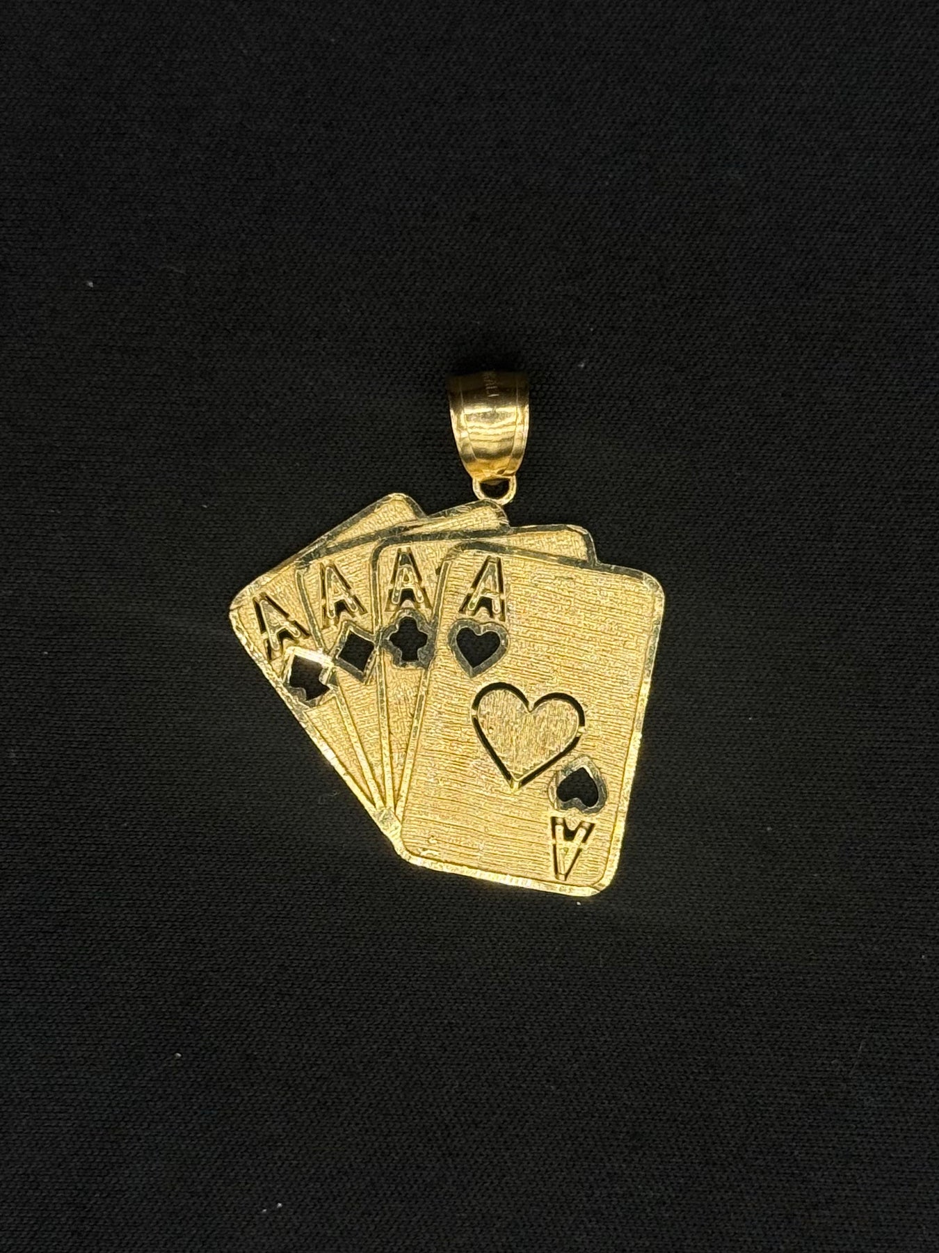 10K Yellow Gold Ace card pendant small and large sizes available. This Pendant Size is 1.29 and by 1.150inch .