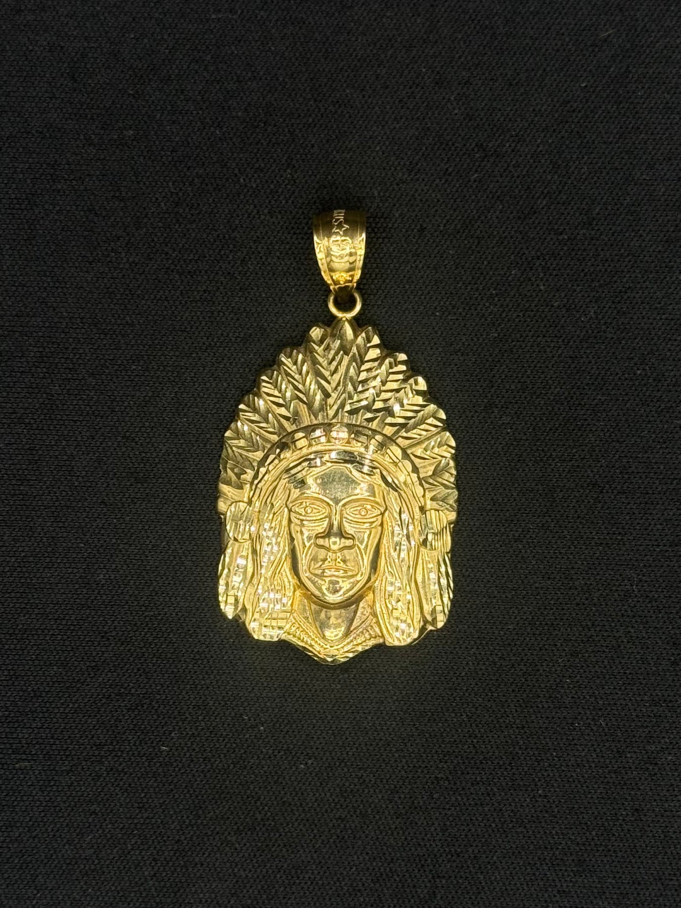10K Yellow gold Chief Head pendant small and large sizes available. This Pendant Size is 1.01 and by 0.99 inch .