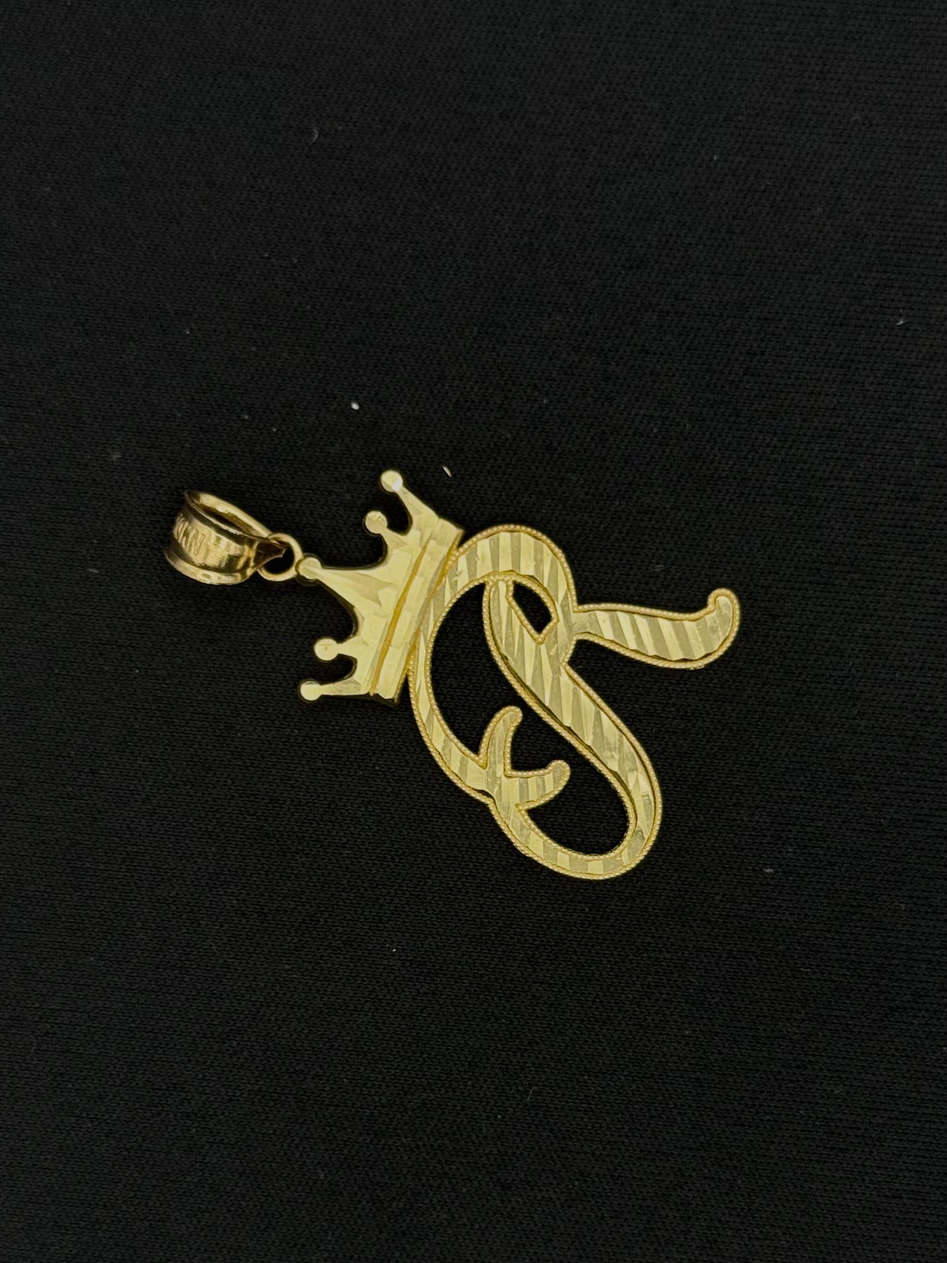 10K Yellow Gold R Initial Crown design pendant in small and large sizes available. This Pendant Size is 0.85 and by 1.43 inch.