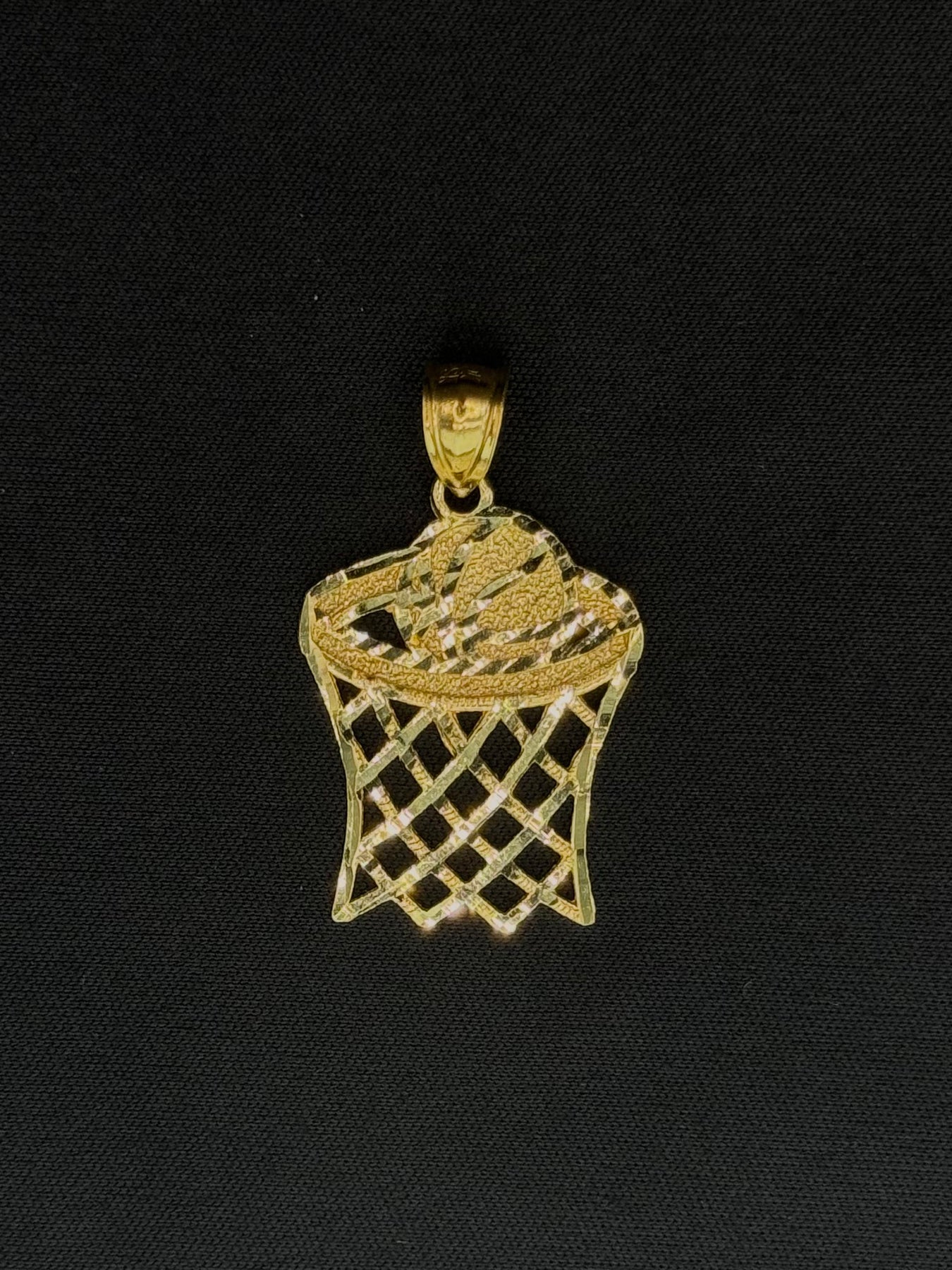 10K GOLD 3D DIA CUT BASKETBALL WITH BASKET