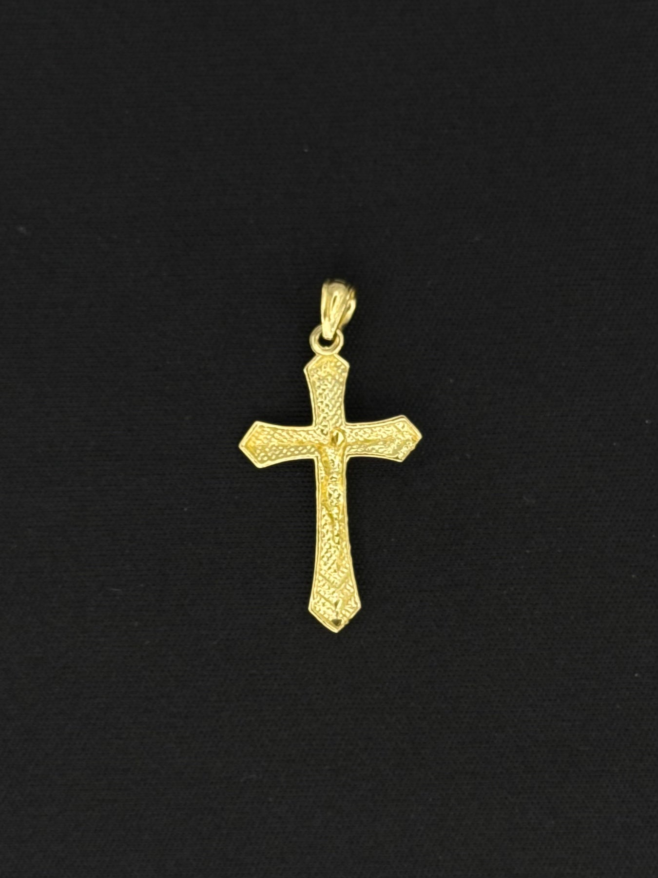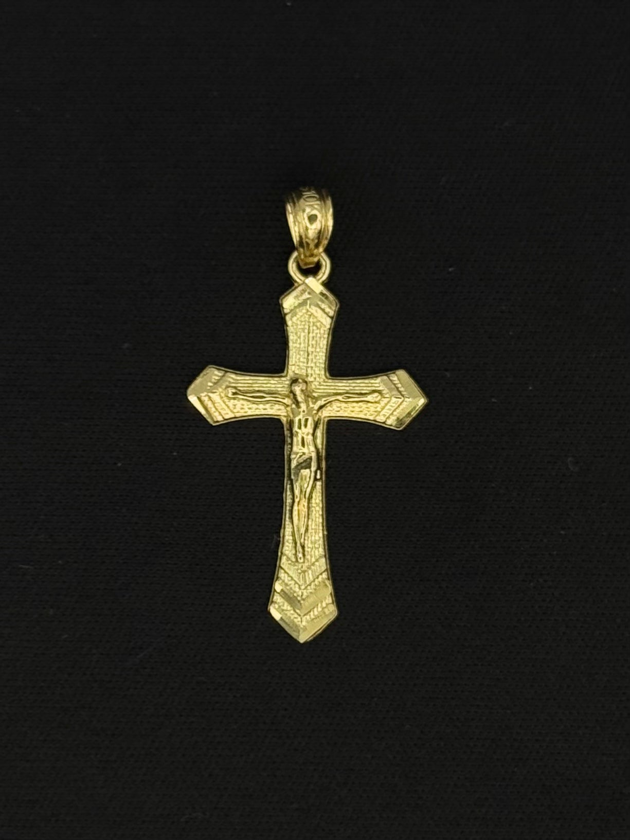 10K Yellow Gold 3D Cross design pendant with Jesus on it in small and large sizes available. This Pendant Size is 1.20and by 0.65 inch .