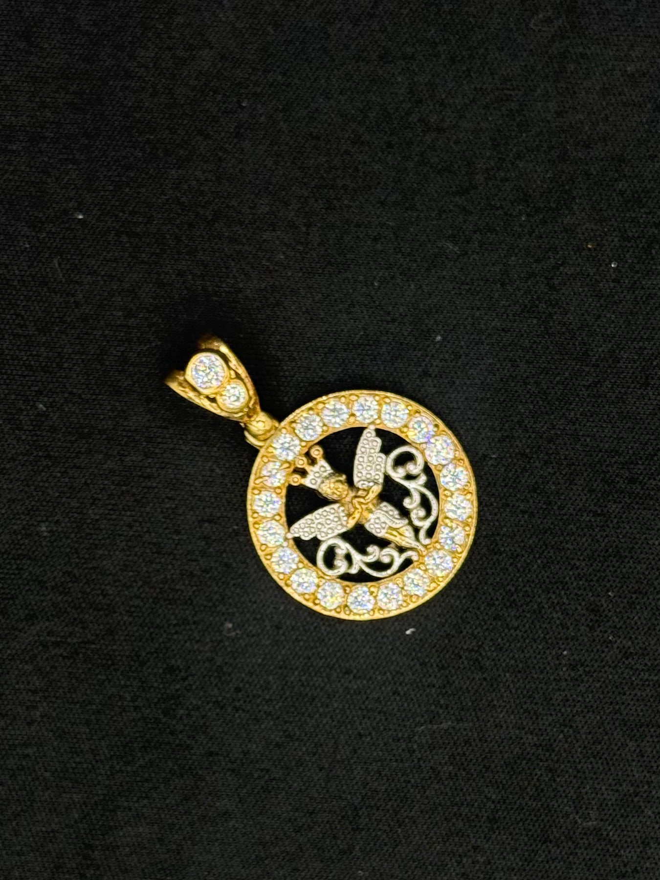 10K Yellow Gold Angel CZ pendant small and large sizes available. This Pendant Size is 1.15 and by 0.78 inch .