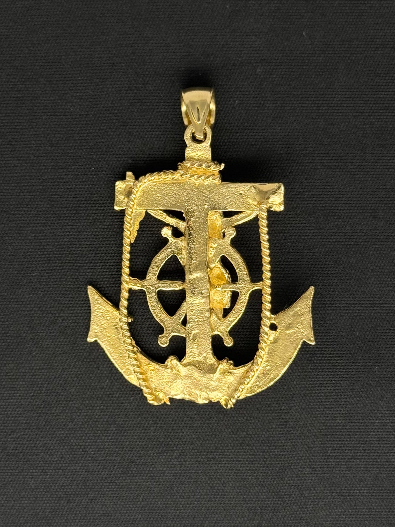 10K Yellow Gold  Mariner’s Anchor with Jesus 3D design pendant in small and large sizes available. This Pendant Size is 1.83 and by 1.31 inch .