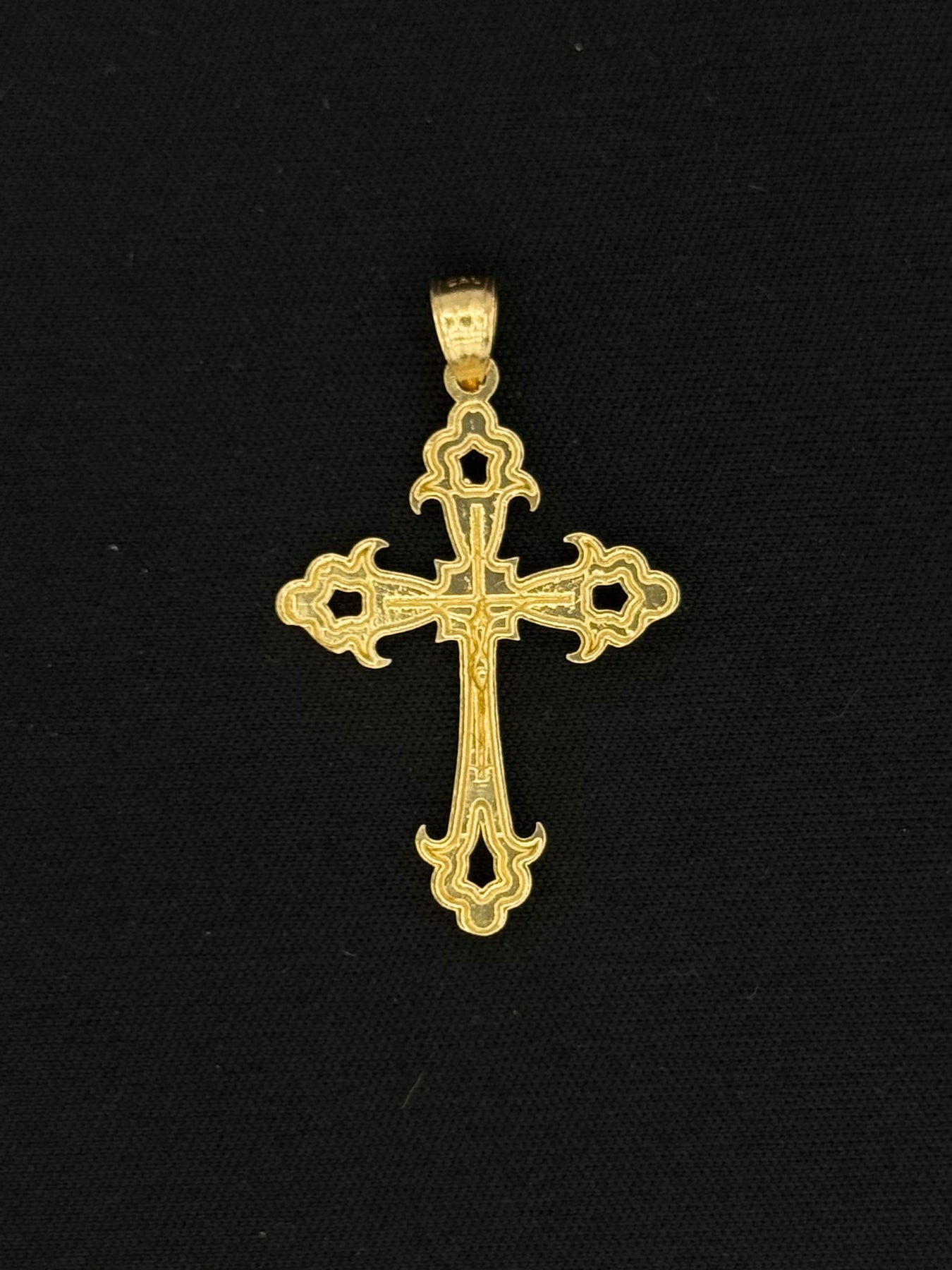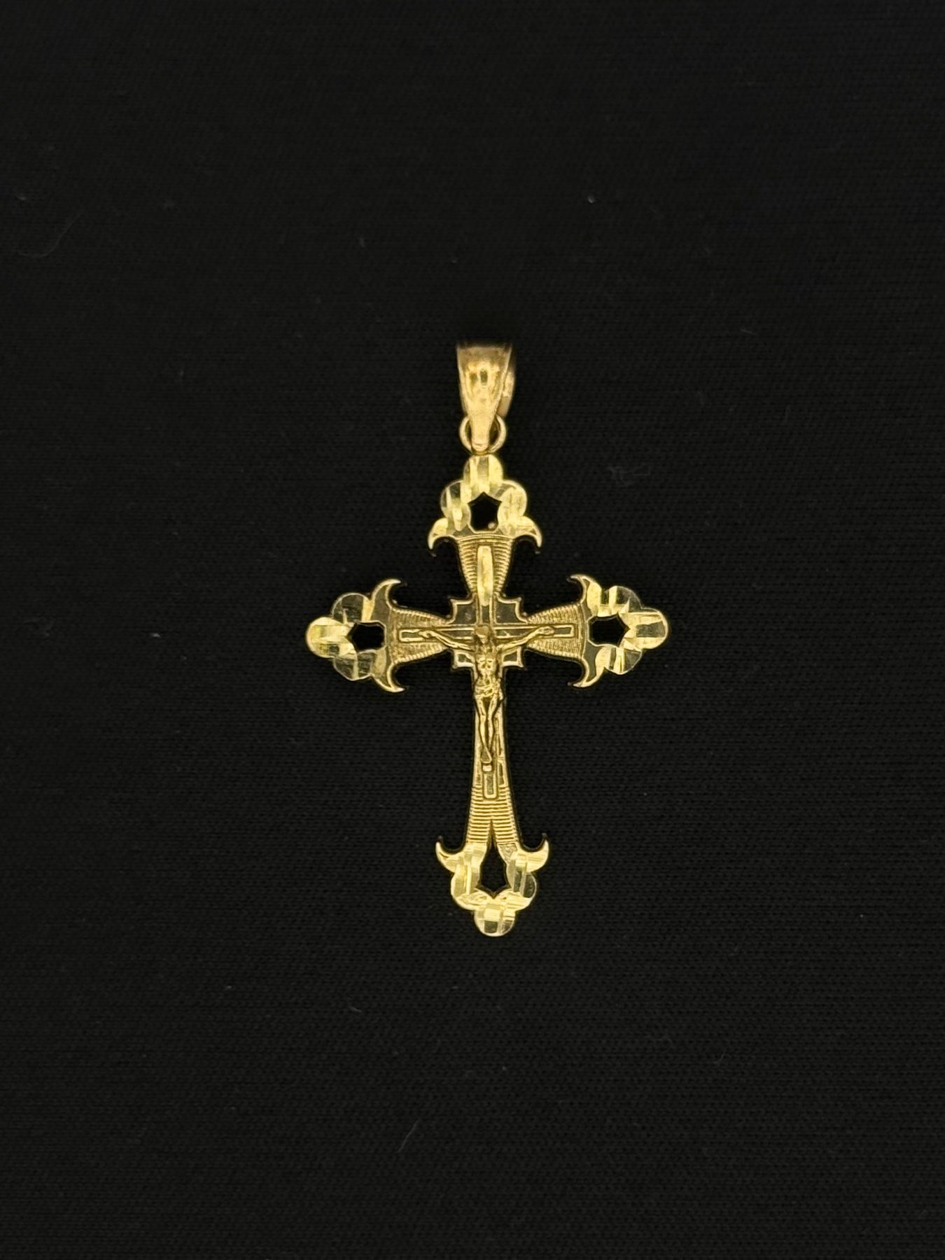 10K Gold Nugget cut Fancy 3d Cross design pendant in small and large sizes available. This Pendant Size is 1.41 and by 0.87 inch .