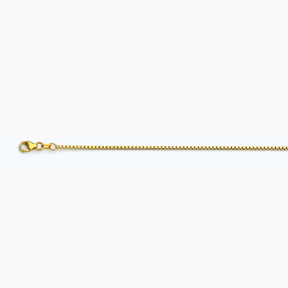 This 14 Karat Yellow Gold Box Chain is a classic chain that is loved worldwide. Made with authentic 14k yellow gold, this chain has cube shaped links that interlock, which makes the chain unique. Comes with various lengths that will match your preference, this chain weighs approximately 0.31 grams per inch and may not be exact.