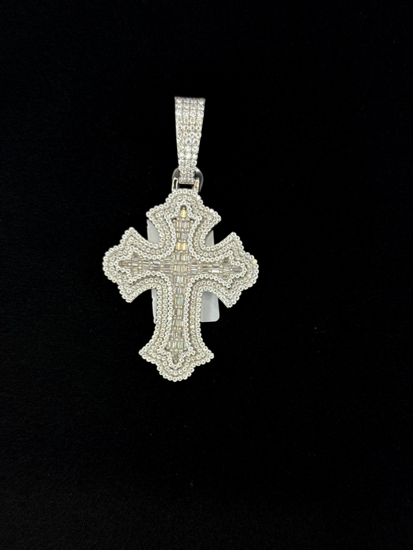925 Silver Moissanite Baguette Cross Pendant. in small and large sizes available. This Pendant Size is 2.47 and by 1.36 inch .