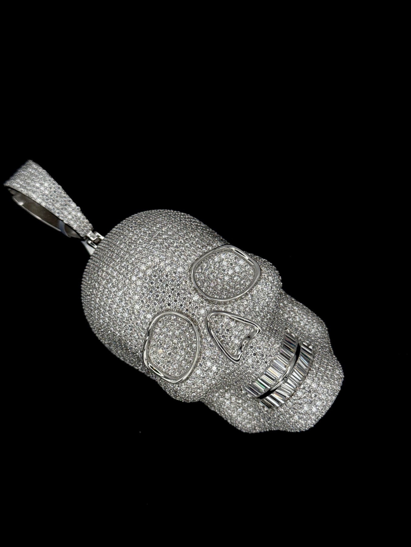 925 Silver Moissanite 3D SKULL Pendant. in small and large sizes available. This Pendant Size is 3.54 and by 1.49 inch .