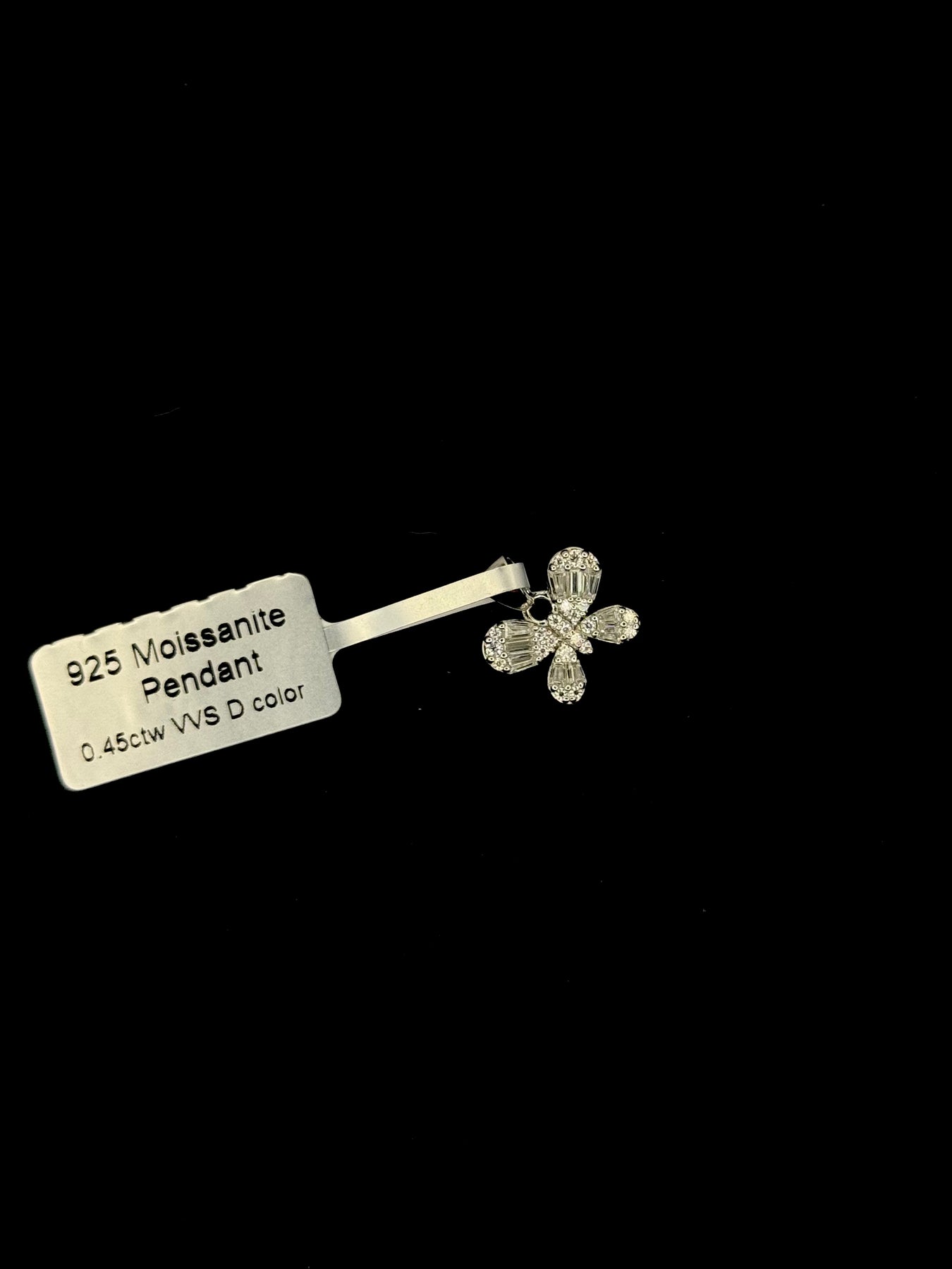 925 Silver Moissanite Baguette Butterfly Pendant. in small and large sizes available. This Pendant Size is 0.43 and by 0.41 inch .