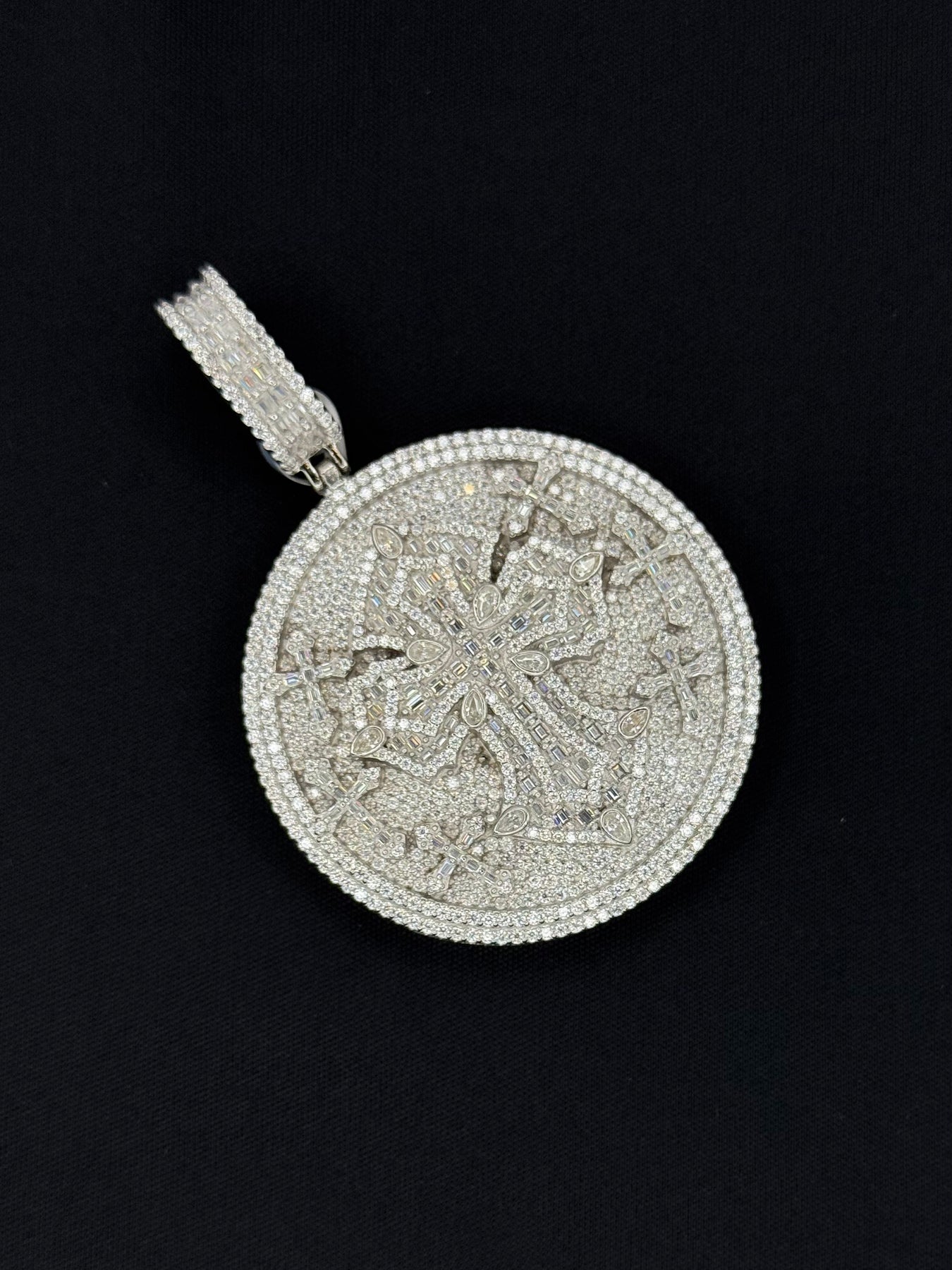 925 Silver Moissanite Iced-out Infinity Cross Pendant. in small and large sizes available. This Pendant Size is 2.62 and by 1.77 inch .