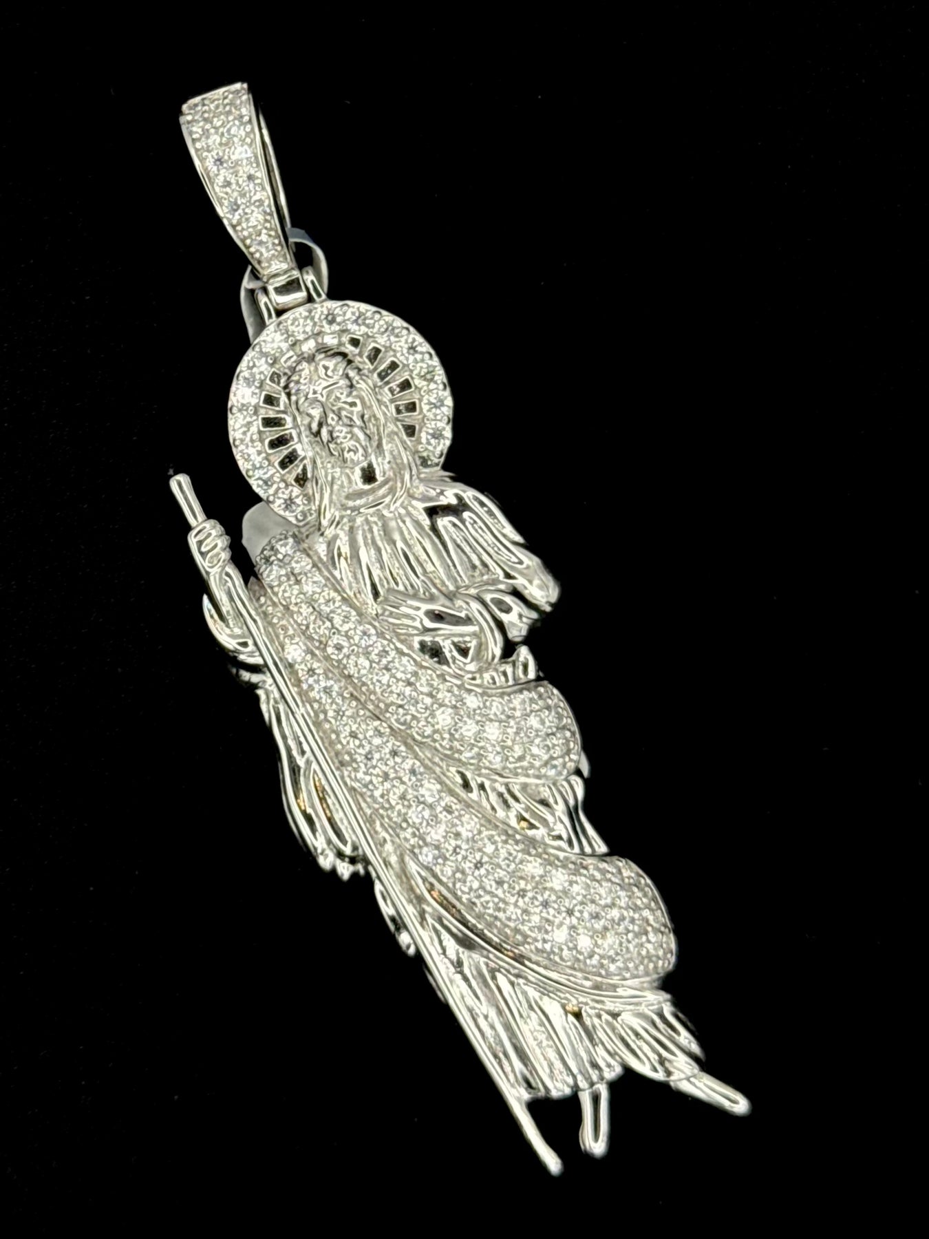 925 Silver Moissanite Saint Jude Pendant. in small and large sizes available. This Pendant Size is 2.24 and by 0.74 inch .