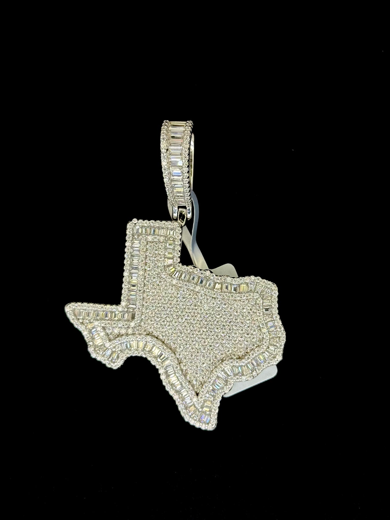 925 Silver Moissanite Texas state Pendant. in small and large sizes available. This Pendant Size is 2.23 and by 1.65 inch .