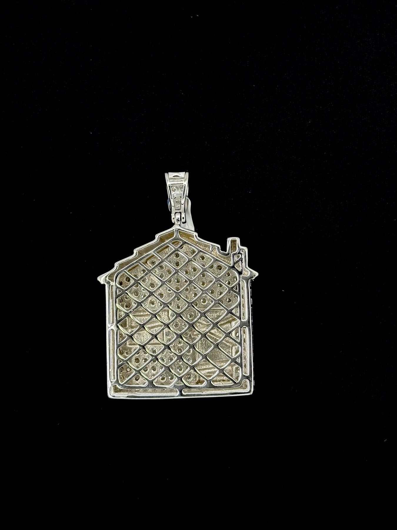 925 Silver Moissanite Trap house Pendant. in small and large sizes available. This Pendant Size is 1.86and by 1.32 inch .