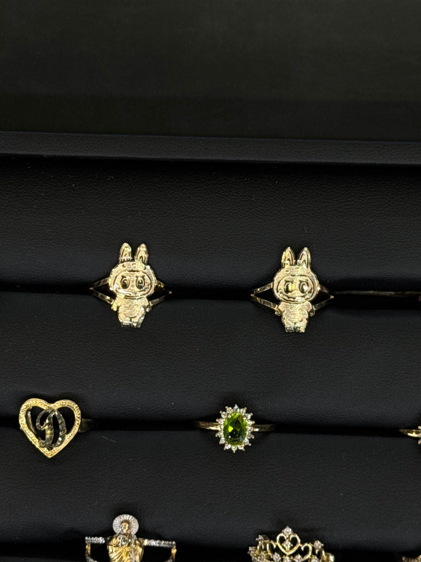 Solid 10k yellow gold Labubu jewelry charms and rings in various sizes. Enjoy great deals—available while supplies last.