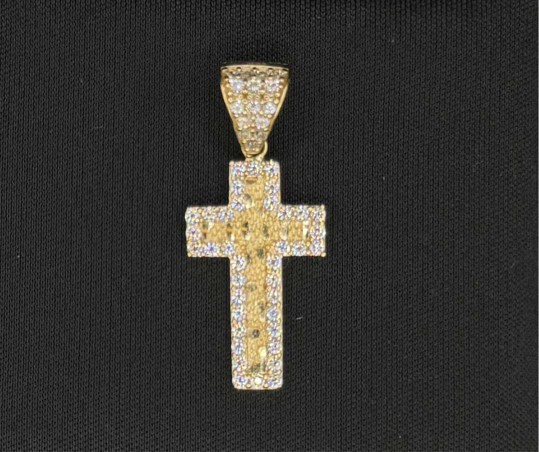 10K GOLD NUGGET CZ CROSS PENDANT