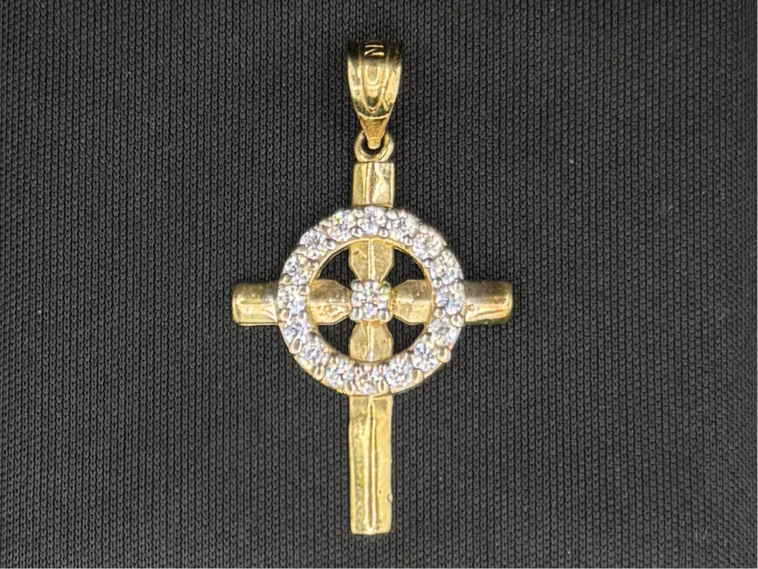 10K GOLD CZ CELTIC CROSS PENDANT