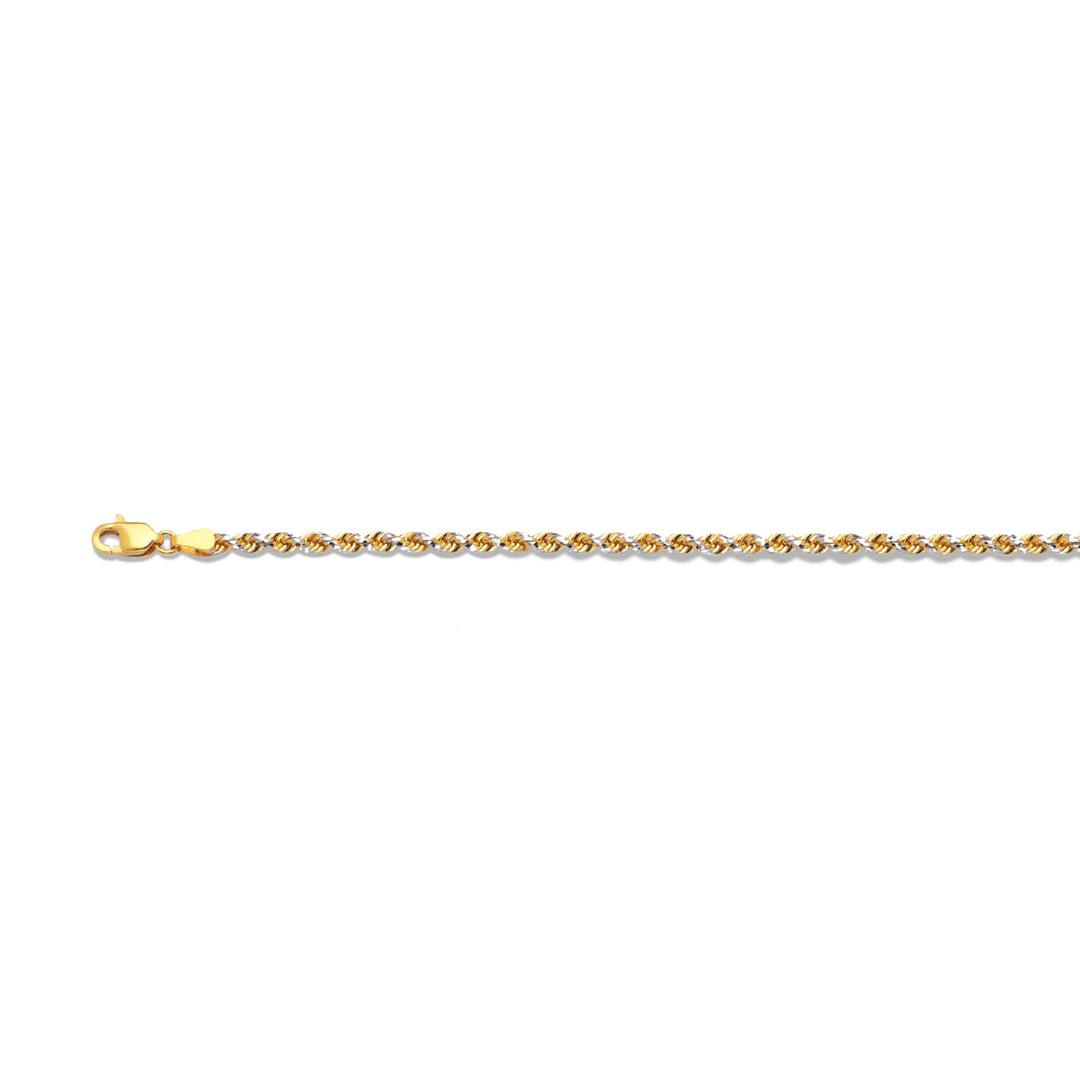 14K 4MM TWO TONE SOLID DC PRISM ROPE 7" CHAIN BRACELET (AVAILABLE IN LENGTHS 7" - 30")