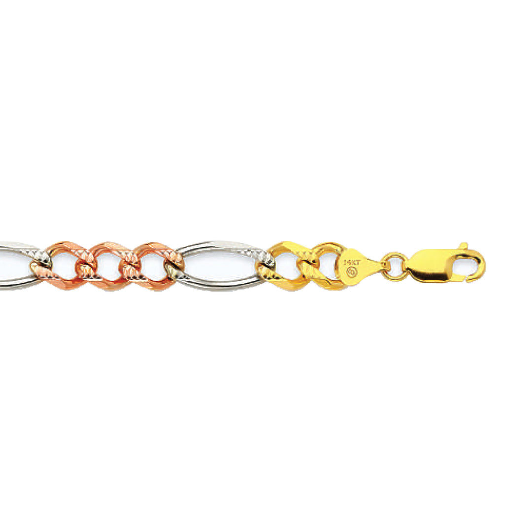 14K 6MM TRICOLOR GOLD SOLID FIGARO 22" CHAIN NECKLACE (AVAILABLE IN LENGTHS 7" - 30")