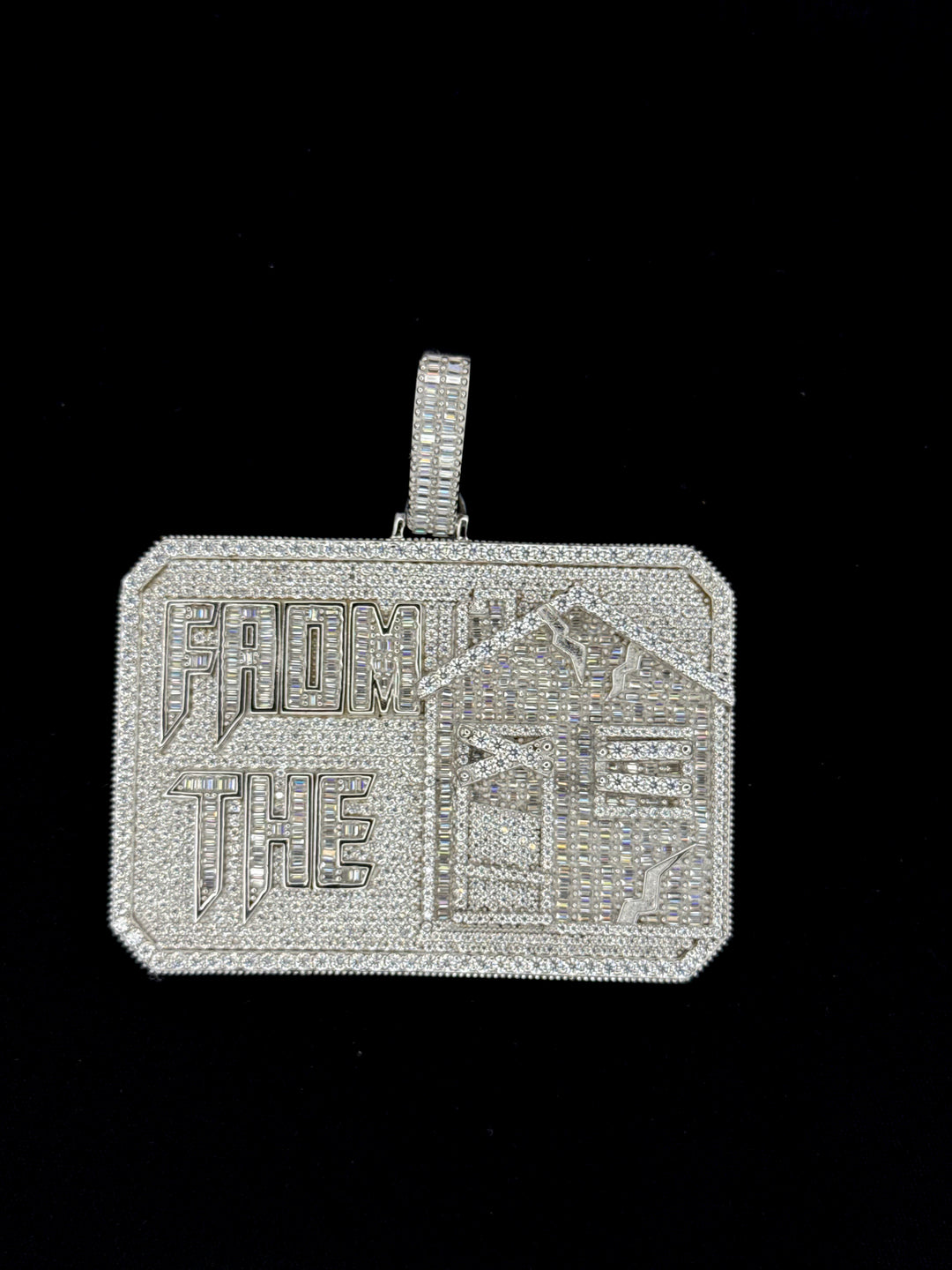 925 SILVER MOISSANITE BAGUETTE "FROM THE TRAP" PLAQUE PENDANT