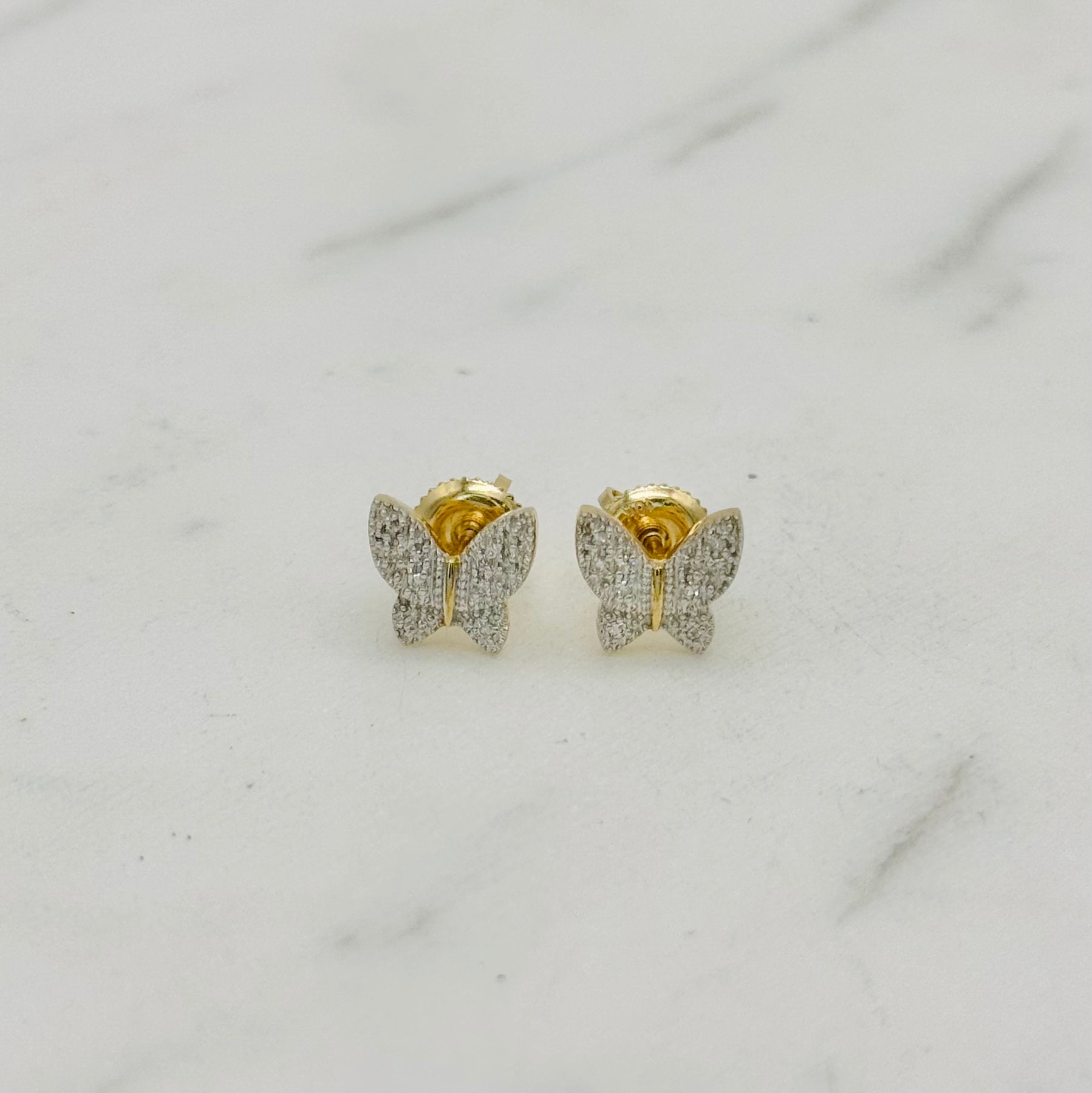 10K Yellow Gold 0.06Ct 8.3mm Butterfly Diamond Studs with Threaded Stem and Screw Backs.