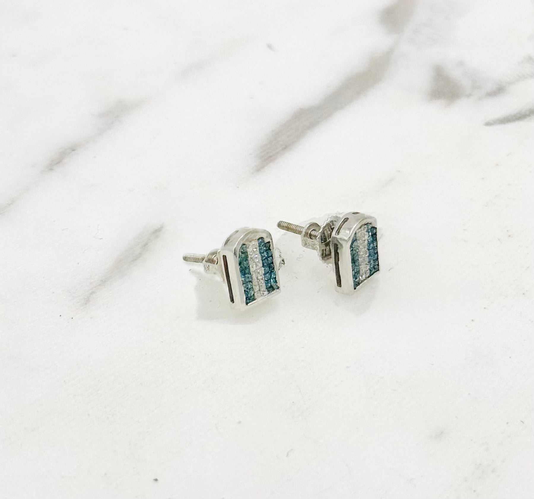 10K GOLD BLUE WITH WHITE WHITE RACING STRIP DIAMOND STUDS