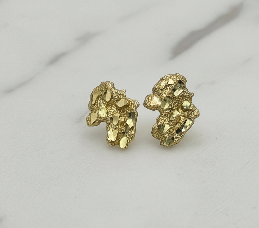 10K Yellow Gold 10.0mm by 7.0mm Nugget Earring with Push Backs.