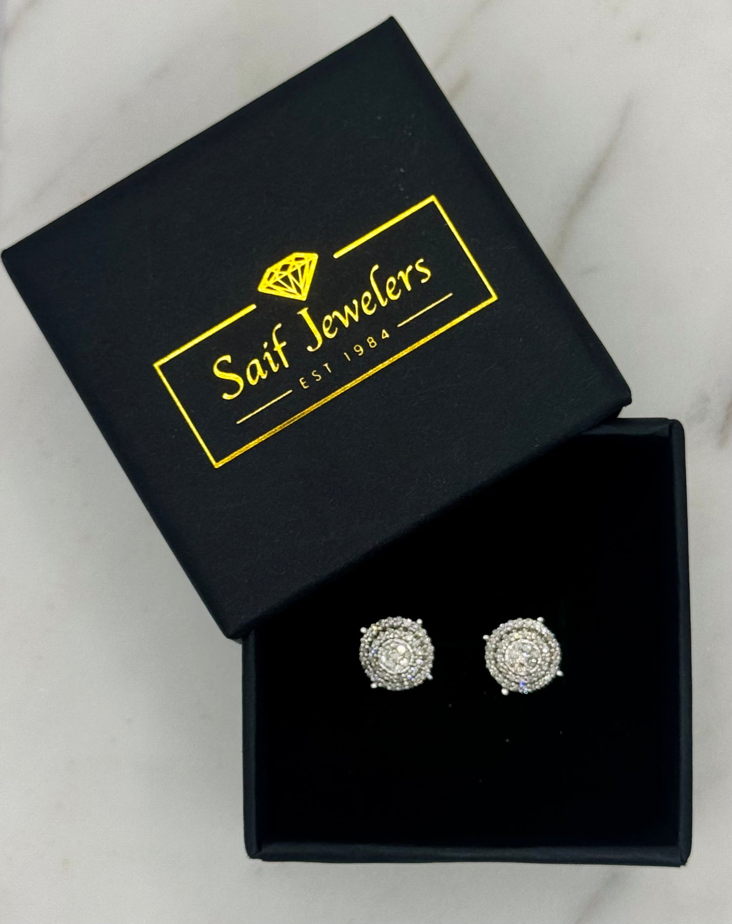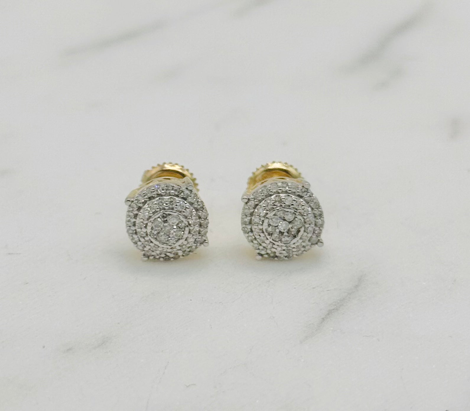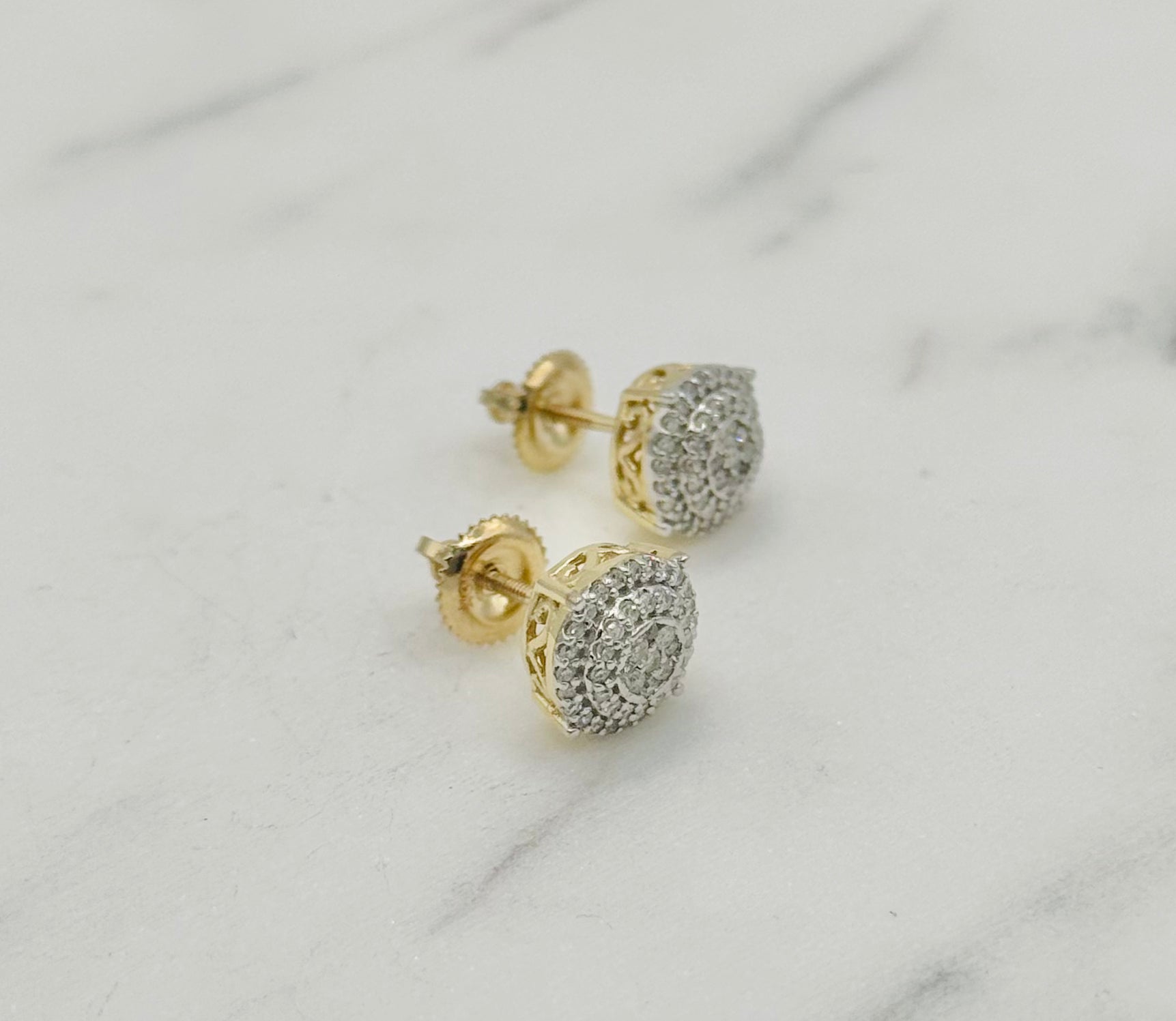 10K Yellow Gold 0.32Ct 7.7mm Round Diamond Studs with Threaded Stem and Screw Backs.