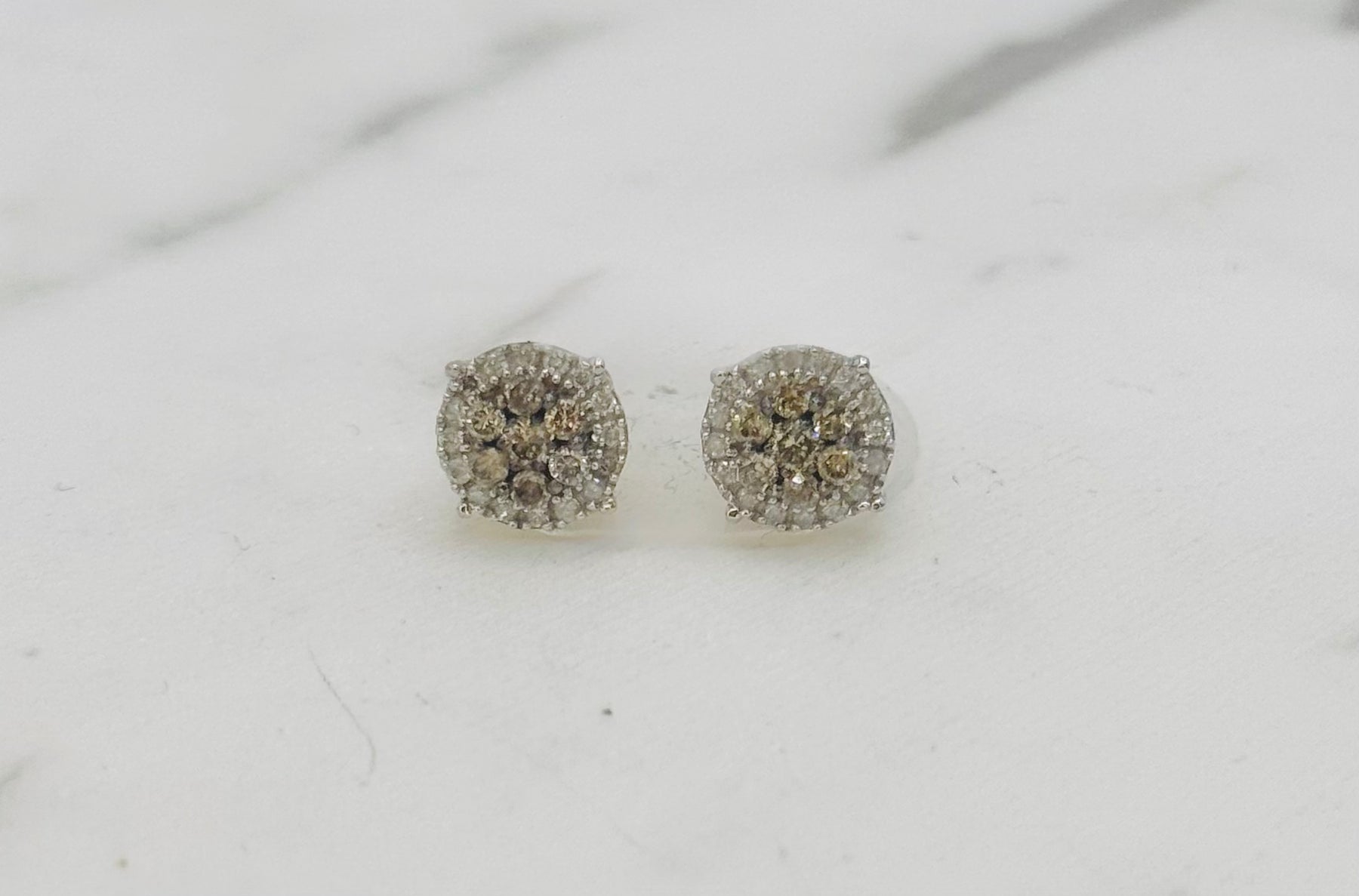 10K Yellow Gold with Rose Gold 0.51Ct 7.9mm Round Diamond Studs with Threaded Stem and Screw Backs.