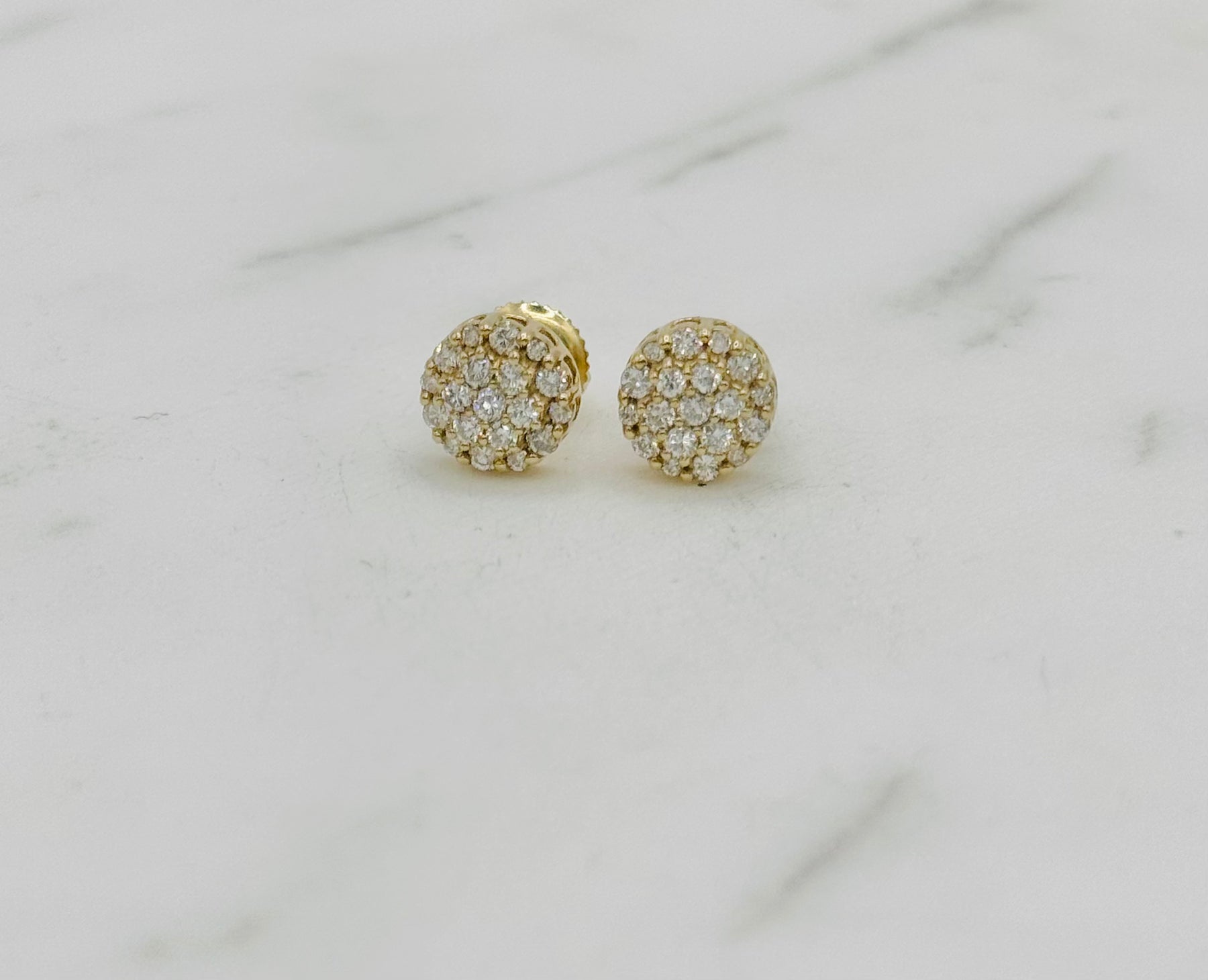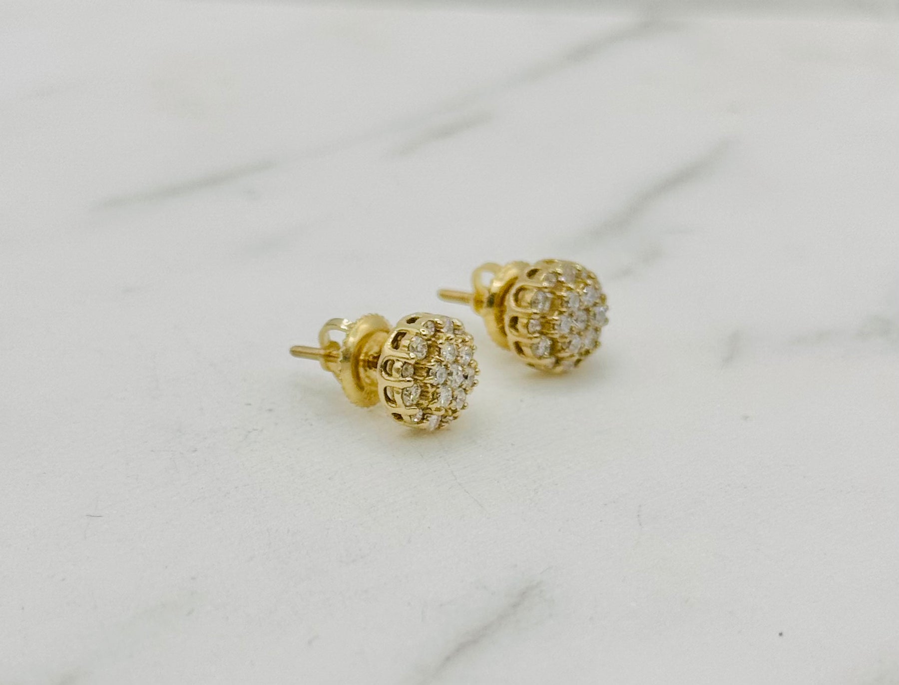 10K Yellow Gold 0.50Ct 7.6mm Round Diamond Studs with Threaded Stem and Screw Backs.