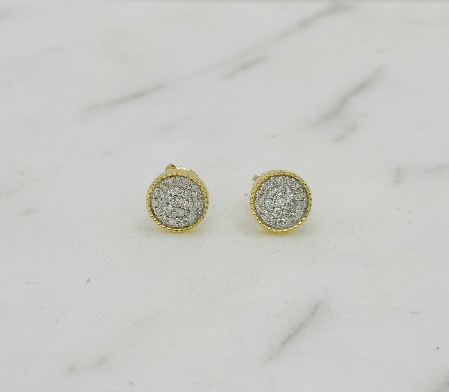 10K Yellow Gold 0.19Ct 8.4mm Round Diamond Studs with Threaded Stem and Screw Backs.
