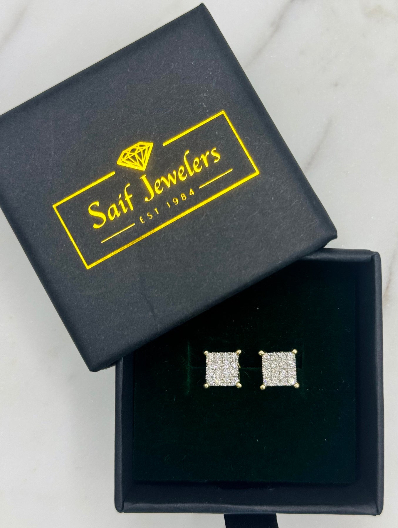 10K Yellow Gold 0.40Ct 7.6mm Square Diamond Studs with Threaded Stem and Screw Backs.