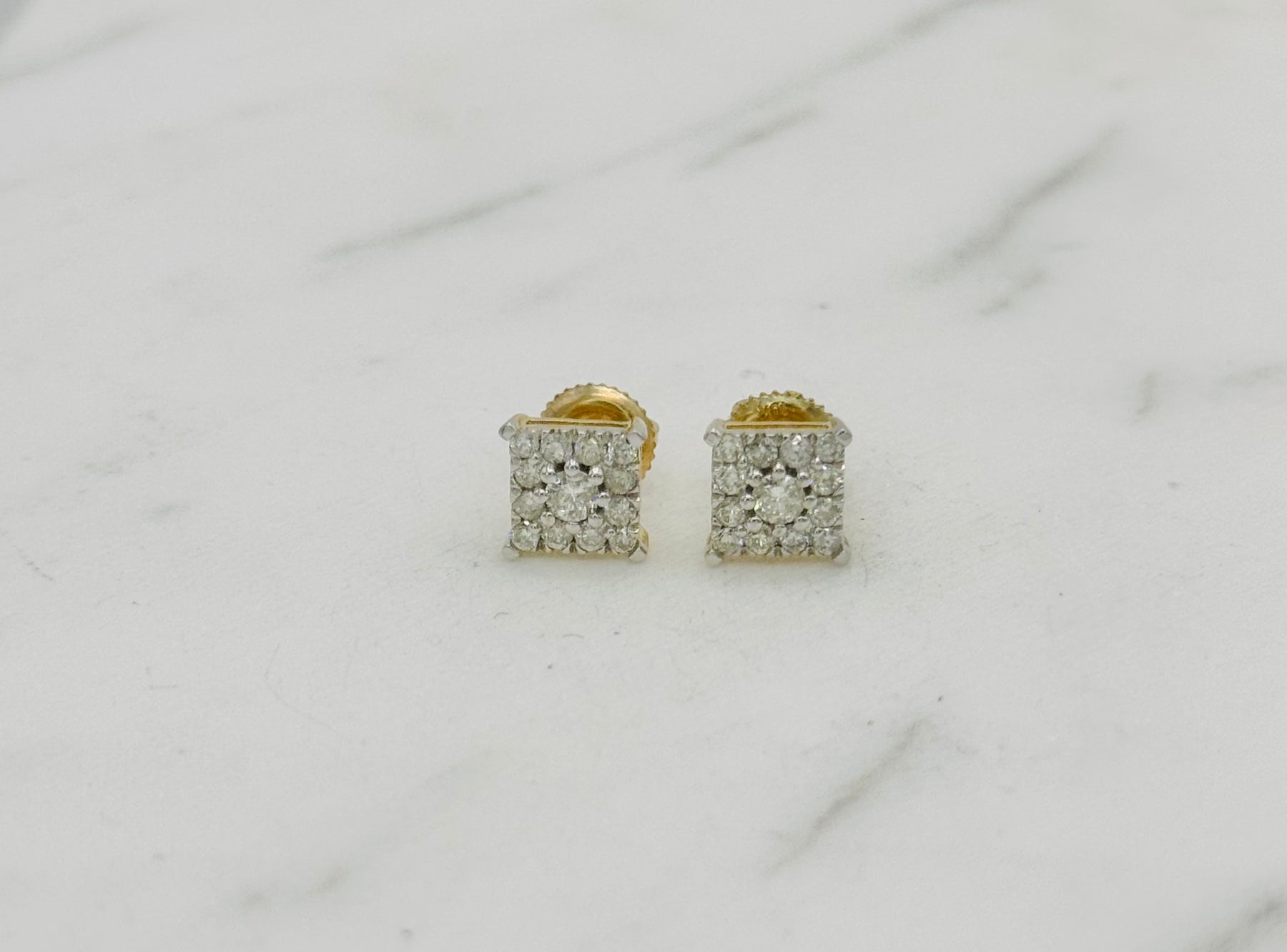 10K Yellow Gold 0.55Ct 7.3mm Square Diamond Studs with Threaded Stem and Screw Backs.