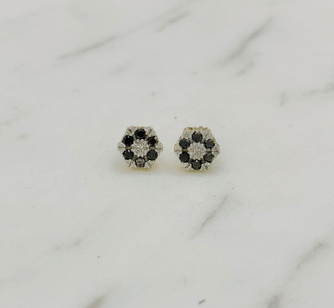 10K GOLD FLOWER BLACK STONE DIAMOND STUDS