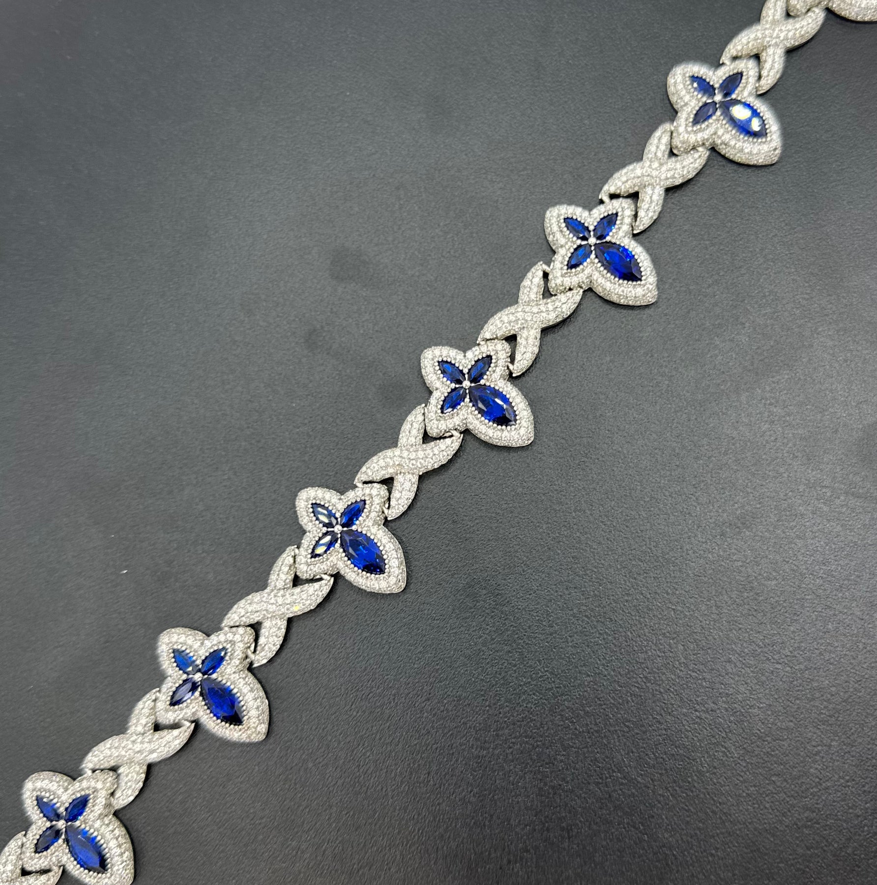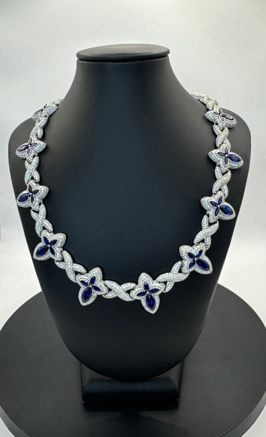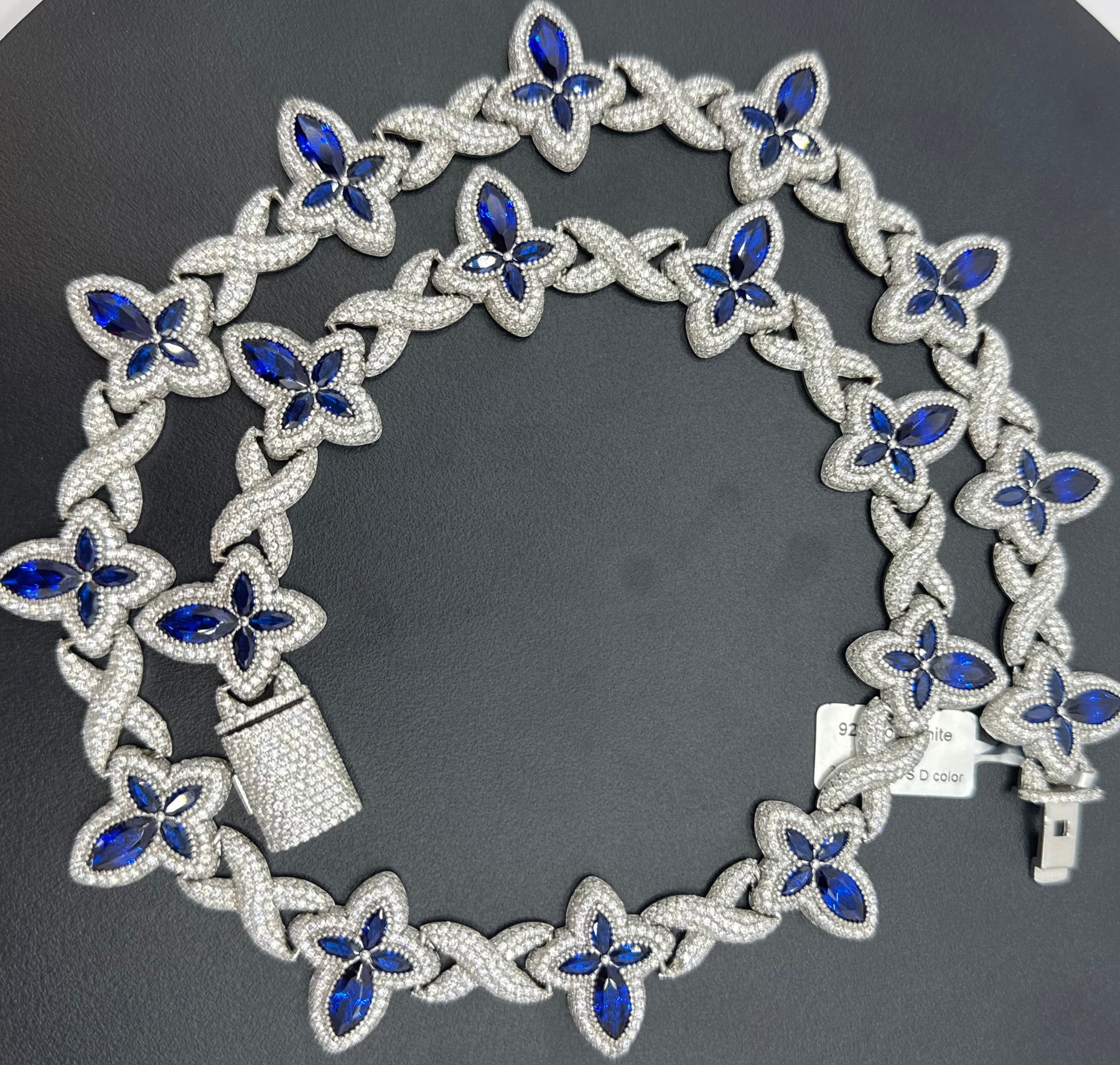 925 Silver Moissanite Blue Clover necklace in small and large sizes available. This Necklace is 24MM 22.25”