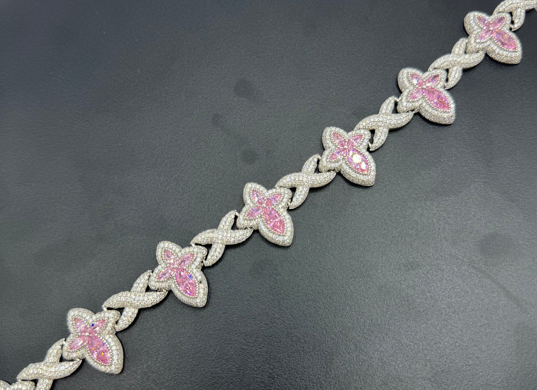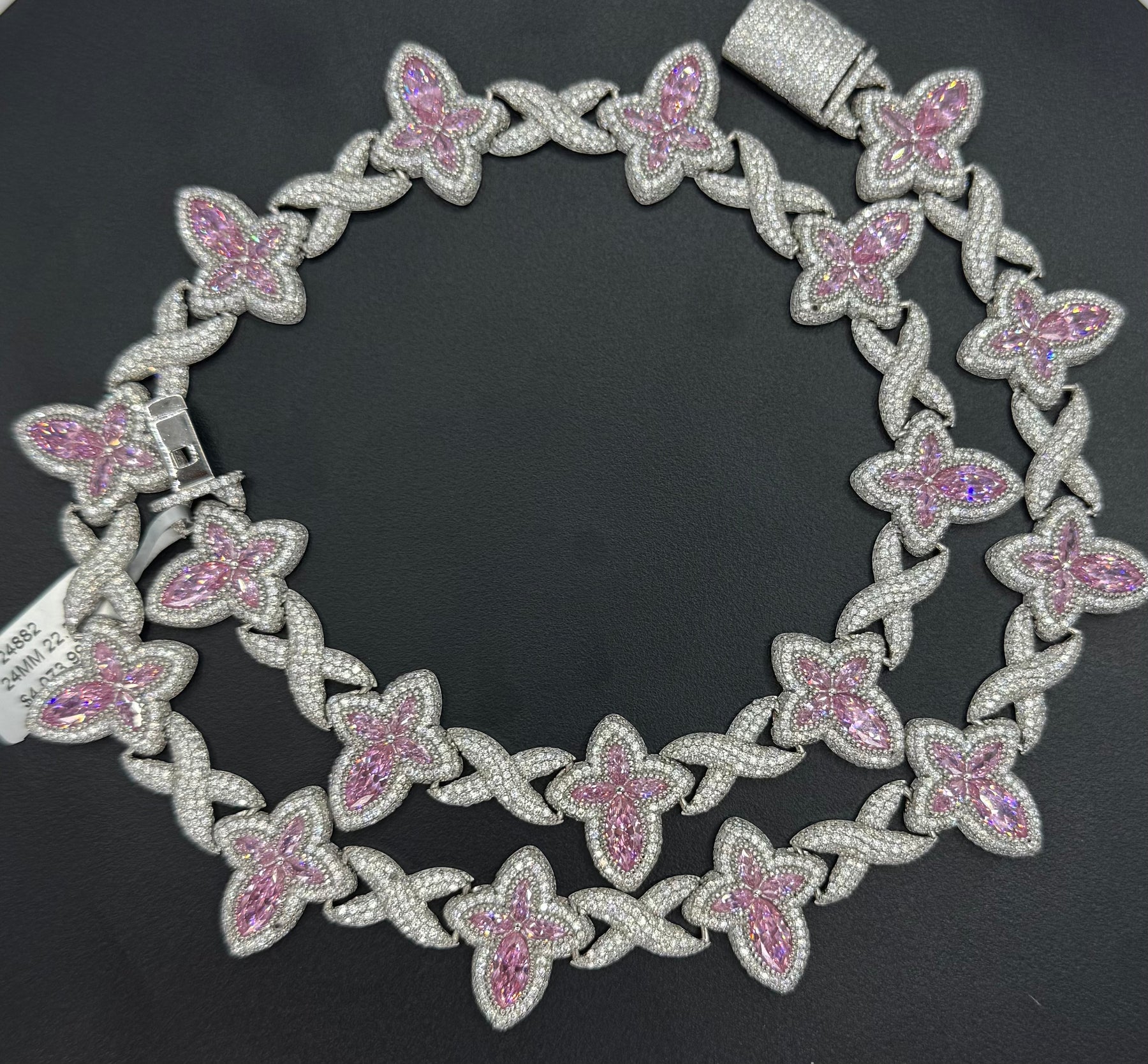 925 Silver Moissanite Pink Clover necklace in small and large sizes available. This Necklace is 24MM 25“