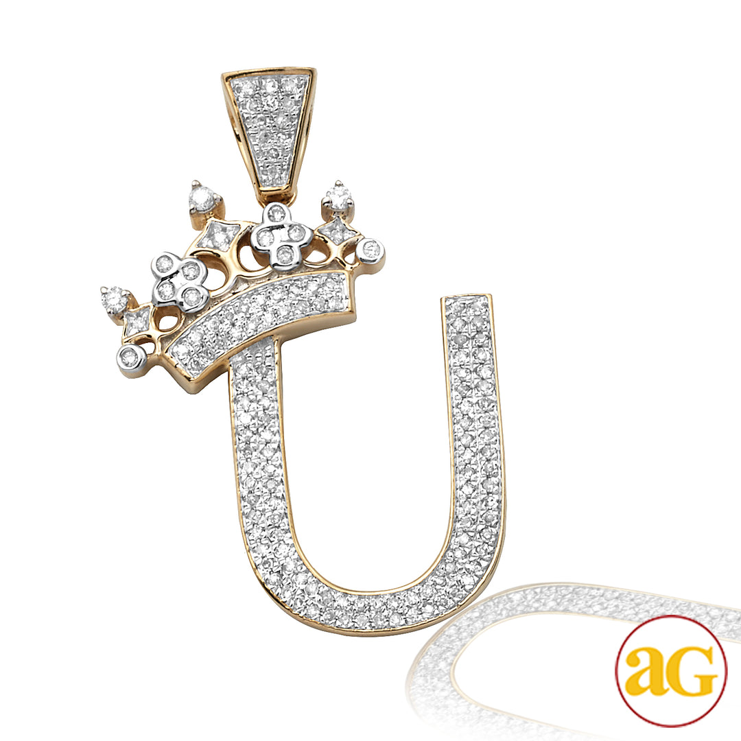 10KY 0.45CTW DIAMOND INITIAL WITH CROWN PENDANT -