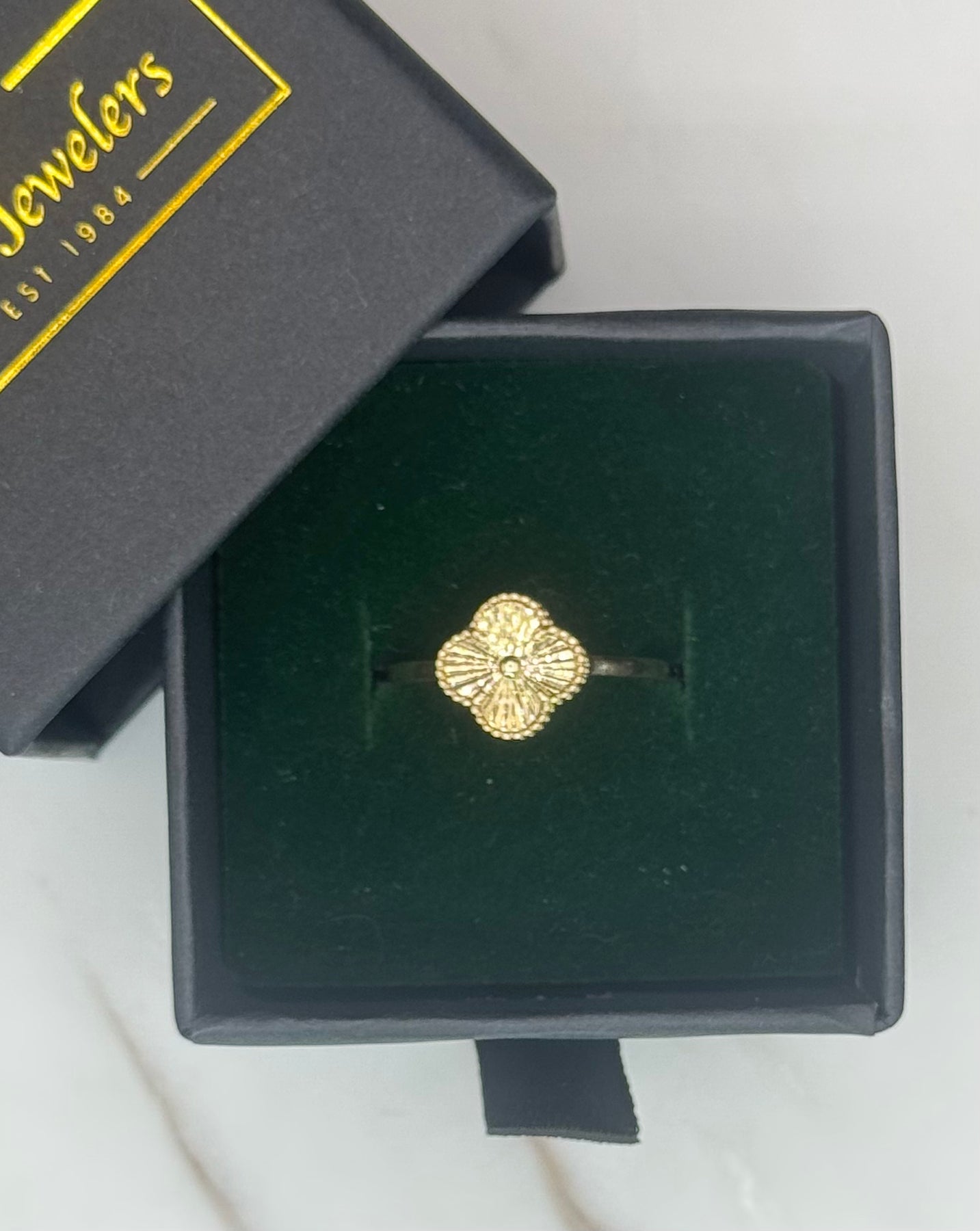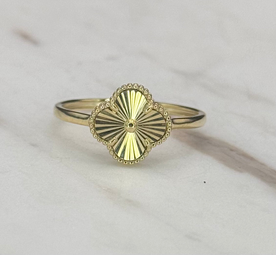 10K Yellow Gold Clover Ring in small and large sizes available. This Ring size is 7
