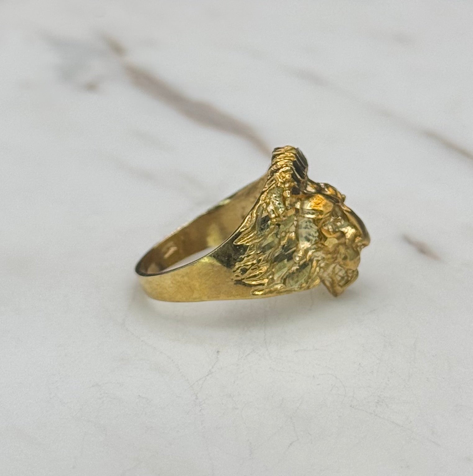 10K Yellow Gold 3D Lion Head Ring in small and large sizes available. This Ring size is 7.5