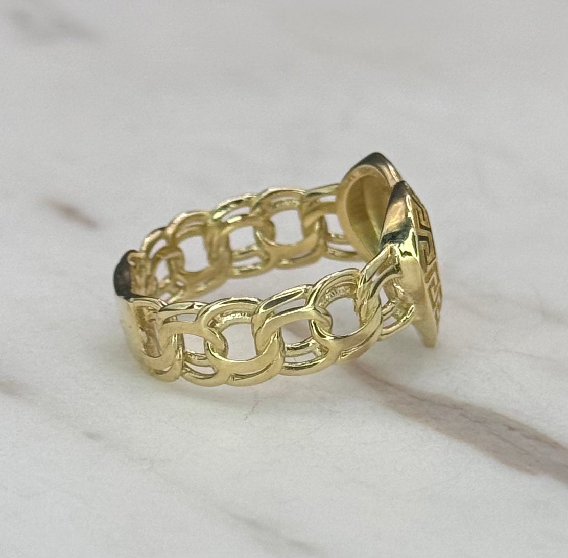 10K GOLD GREEK PRINT HEART SHAPE WITH CHINO LINK BAND RING