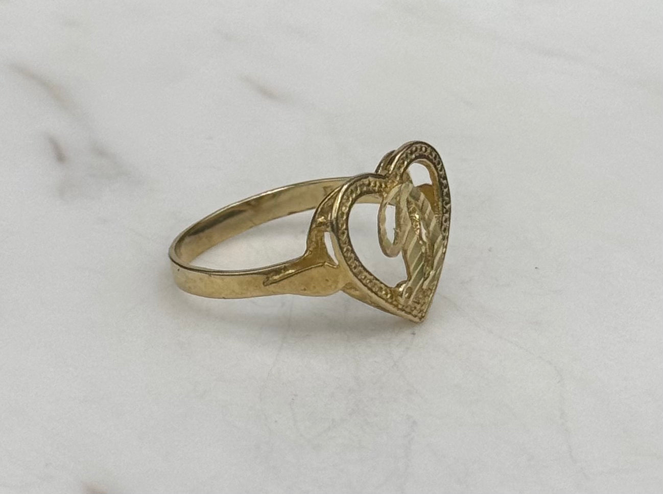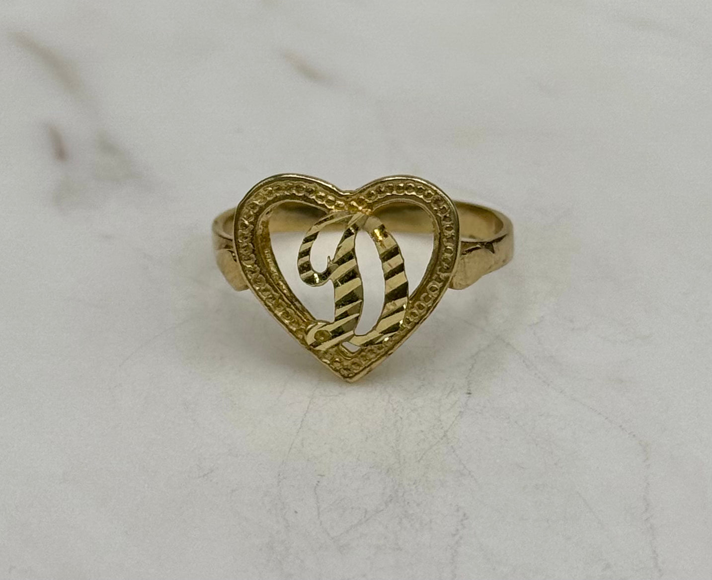 10K Yellow Gold Heart Shape Dia Cut D Initial Ring in small and large sizes available. This Ring size is 7.5