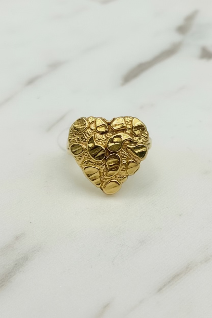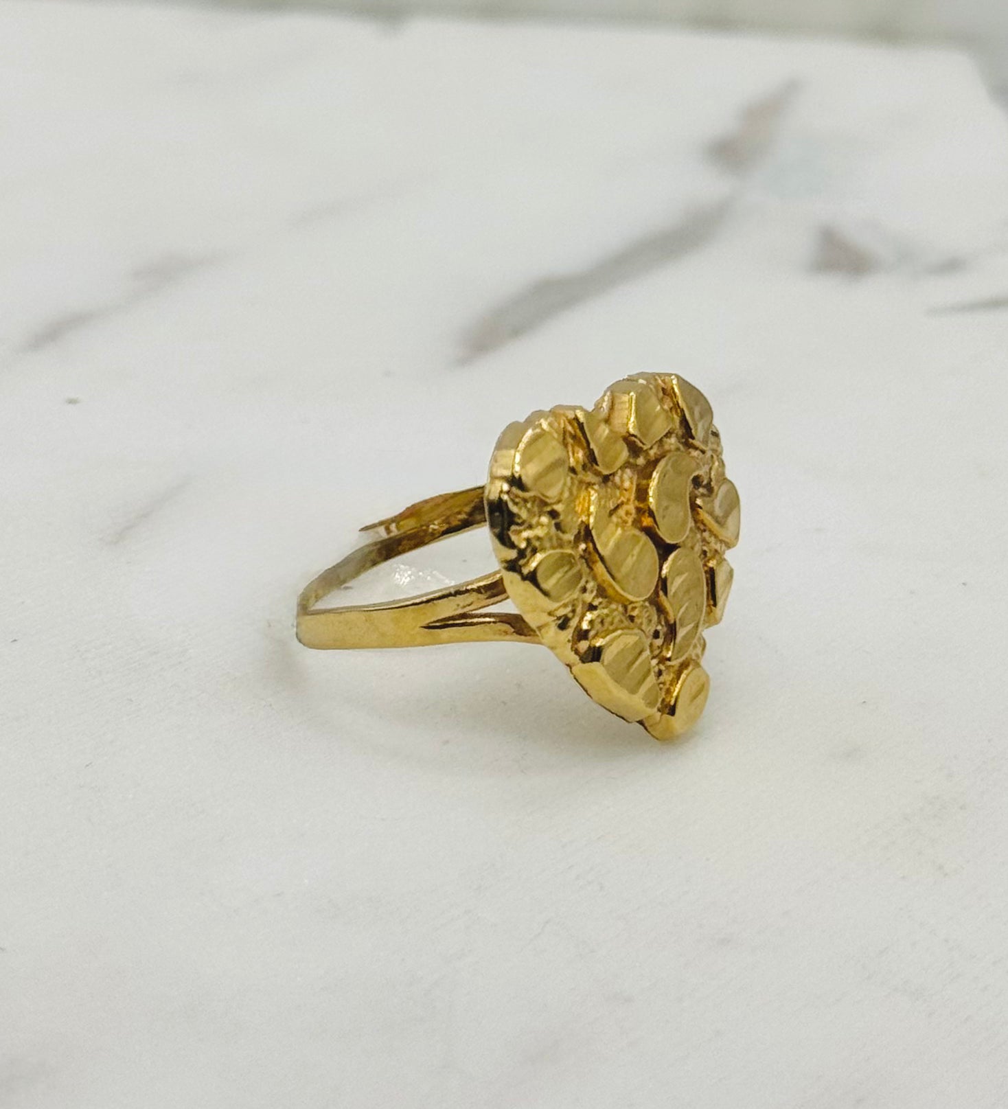 10K Yellow Gold Heart Nugget Ring in small and large sizes available. This Ring size is 9