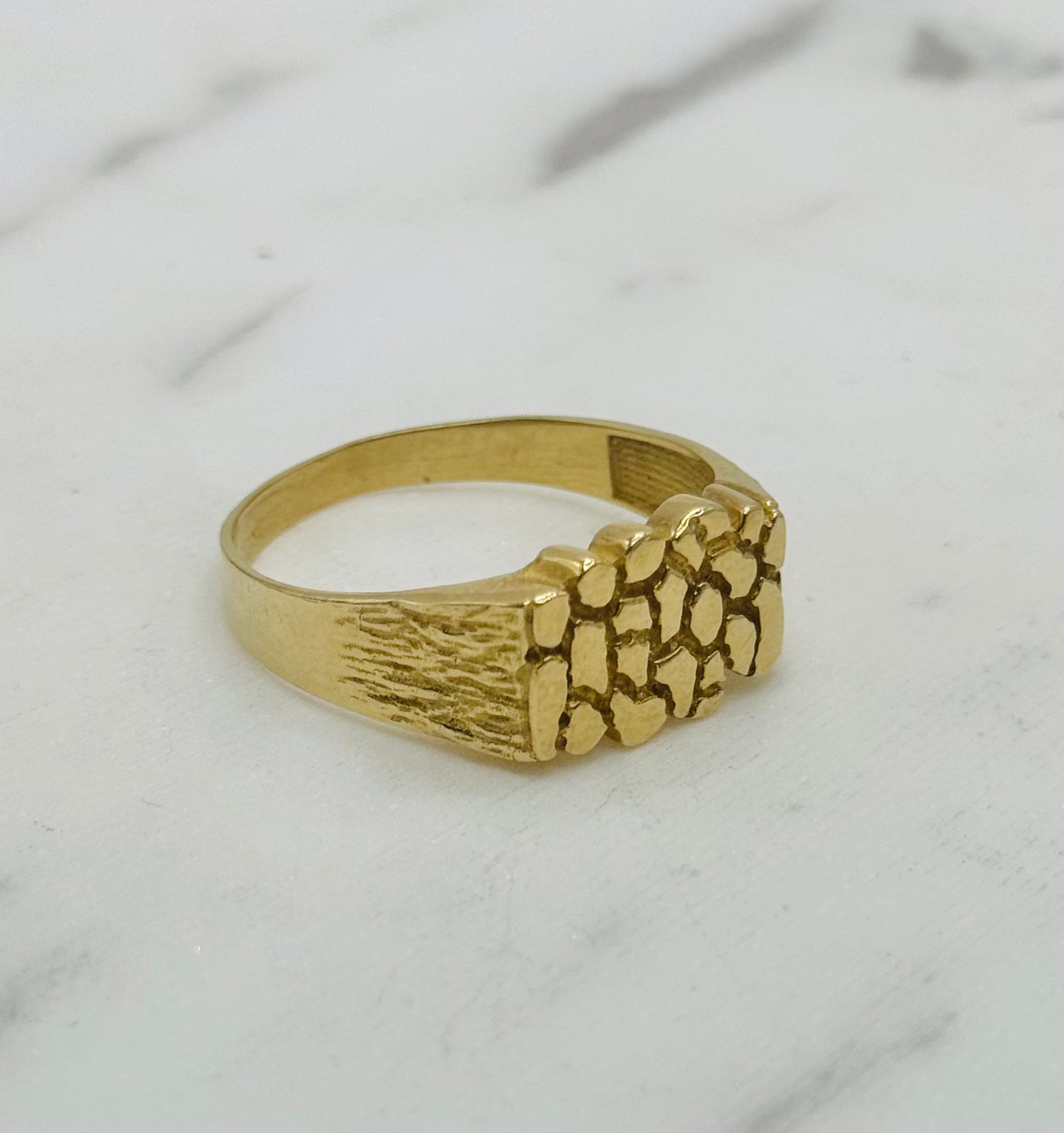 10K Yellow Gold Nugget Ring in small and large sizes available. This Ring size is 14