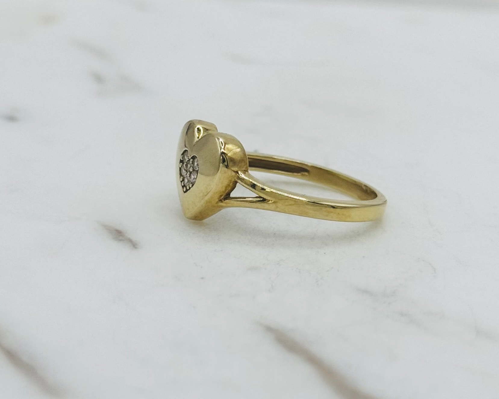 10K Yellow Gold Heart with Cz Ring in small and large sizes available. This Ring size is 7