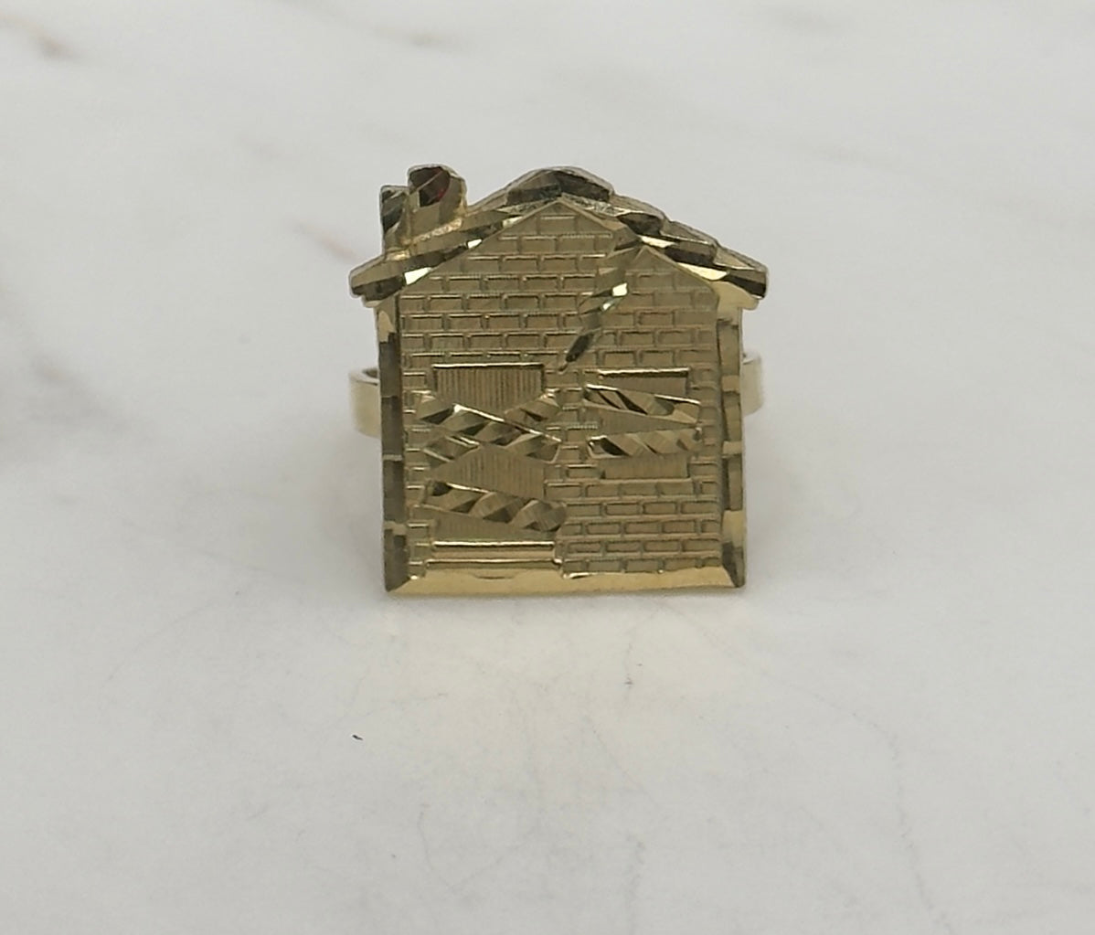 10K Yellow Gold Trap House Dia Cut Ring in small and large sizes available. This Ring size is 7