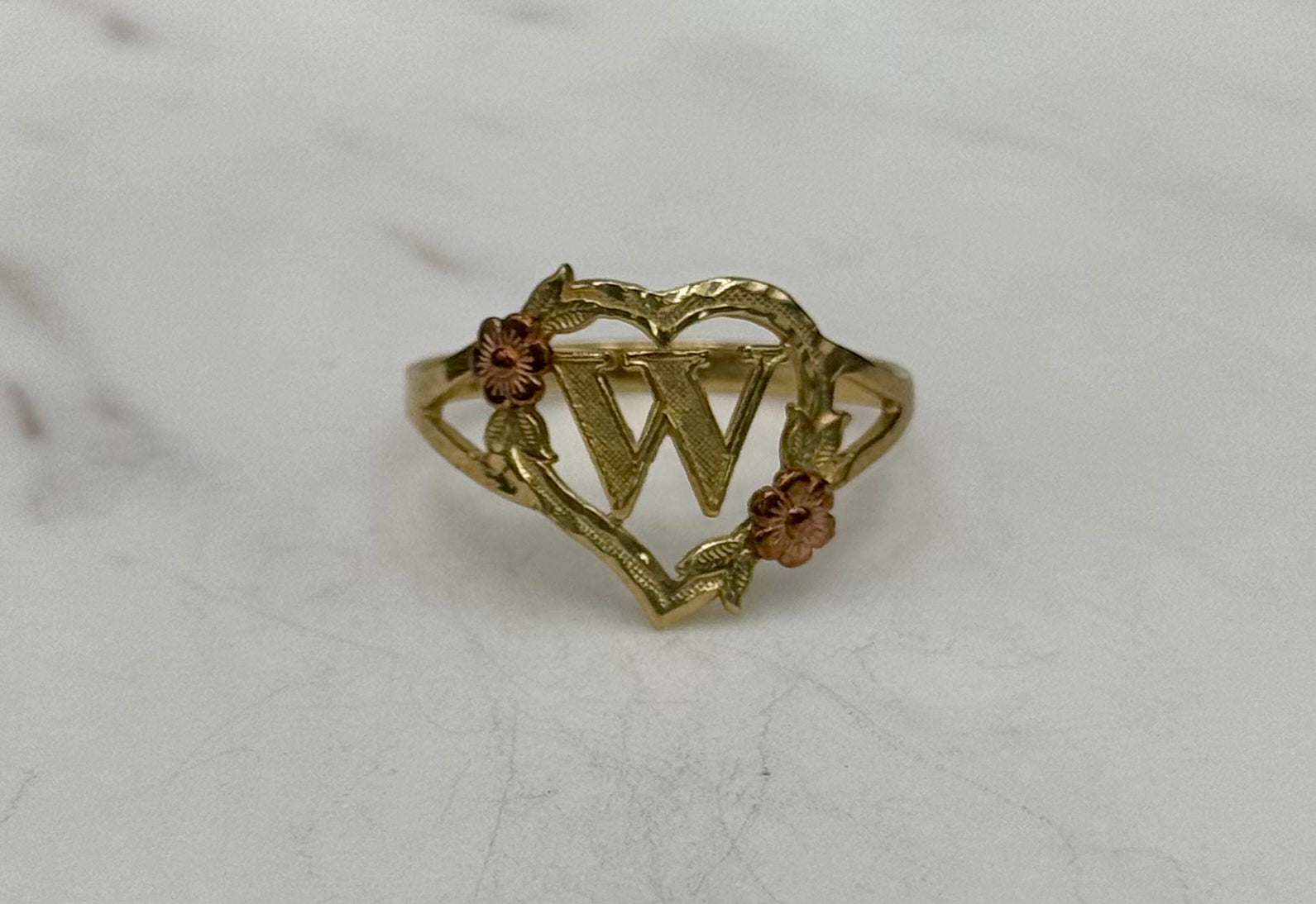 10K Yellow Gold with Rose Gold Heart Shape W Initial Ring in small and large sizes available. This Ring size is 9
