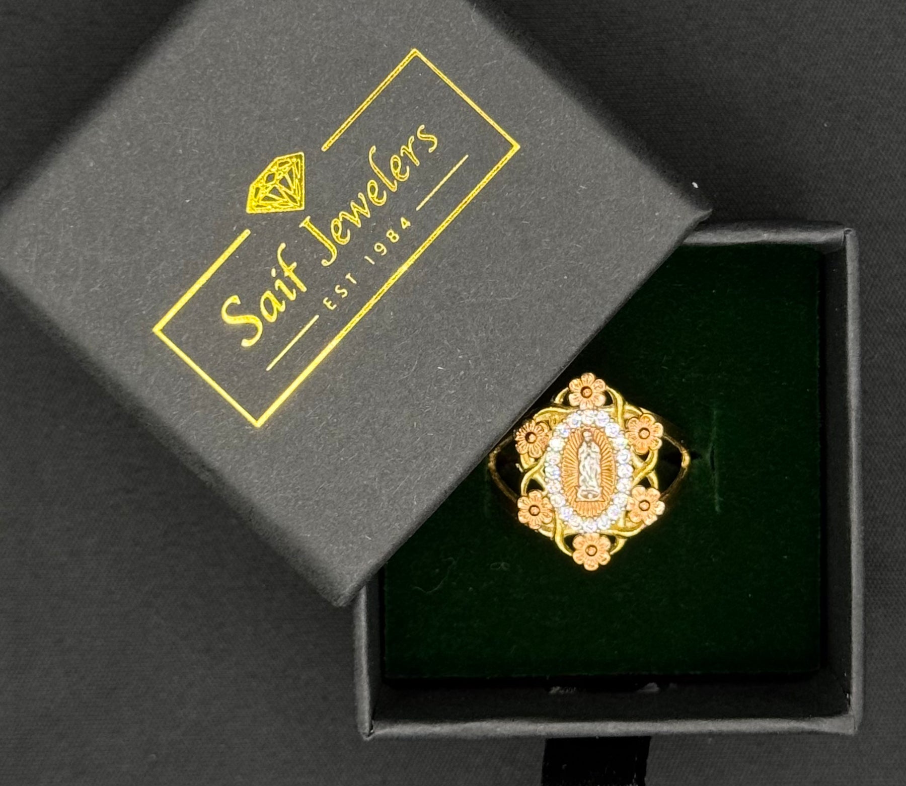10k Yellow and rose gold Virgin Mary Ring in small and large sizes available. This Ring size is 8