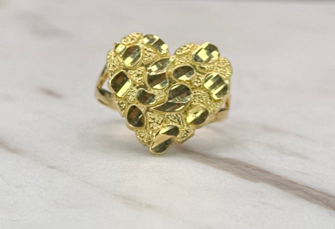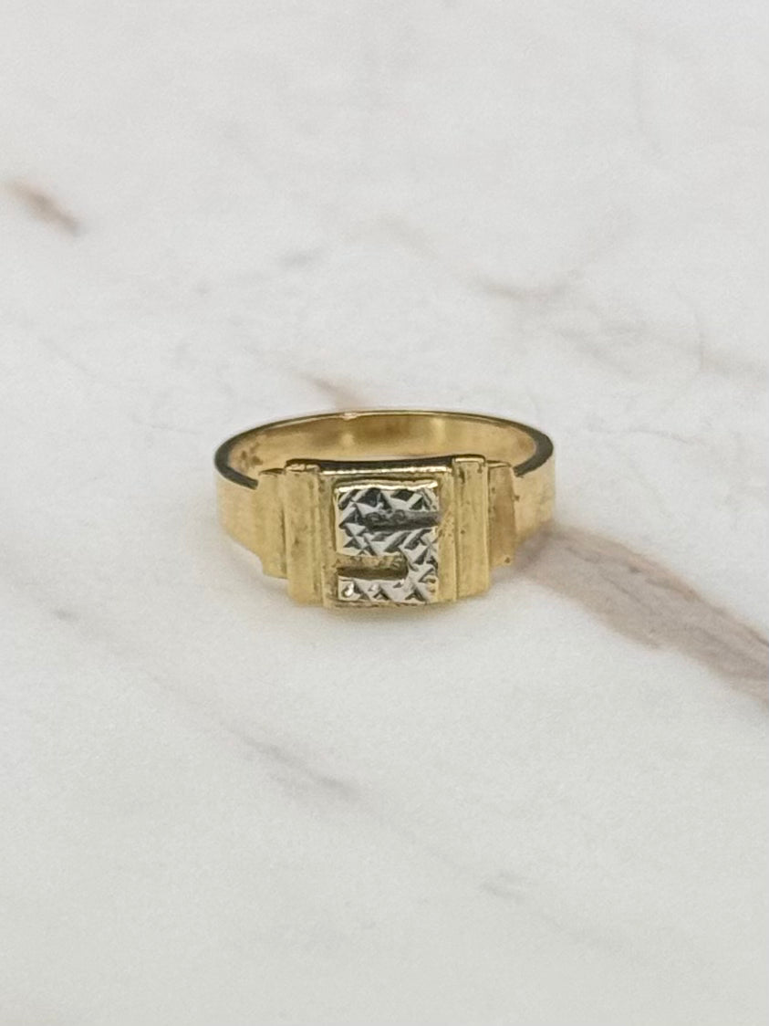 10K GOLD GREEK PRINT HEART SHAPE WITH CHINO LINK BAND RING