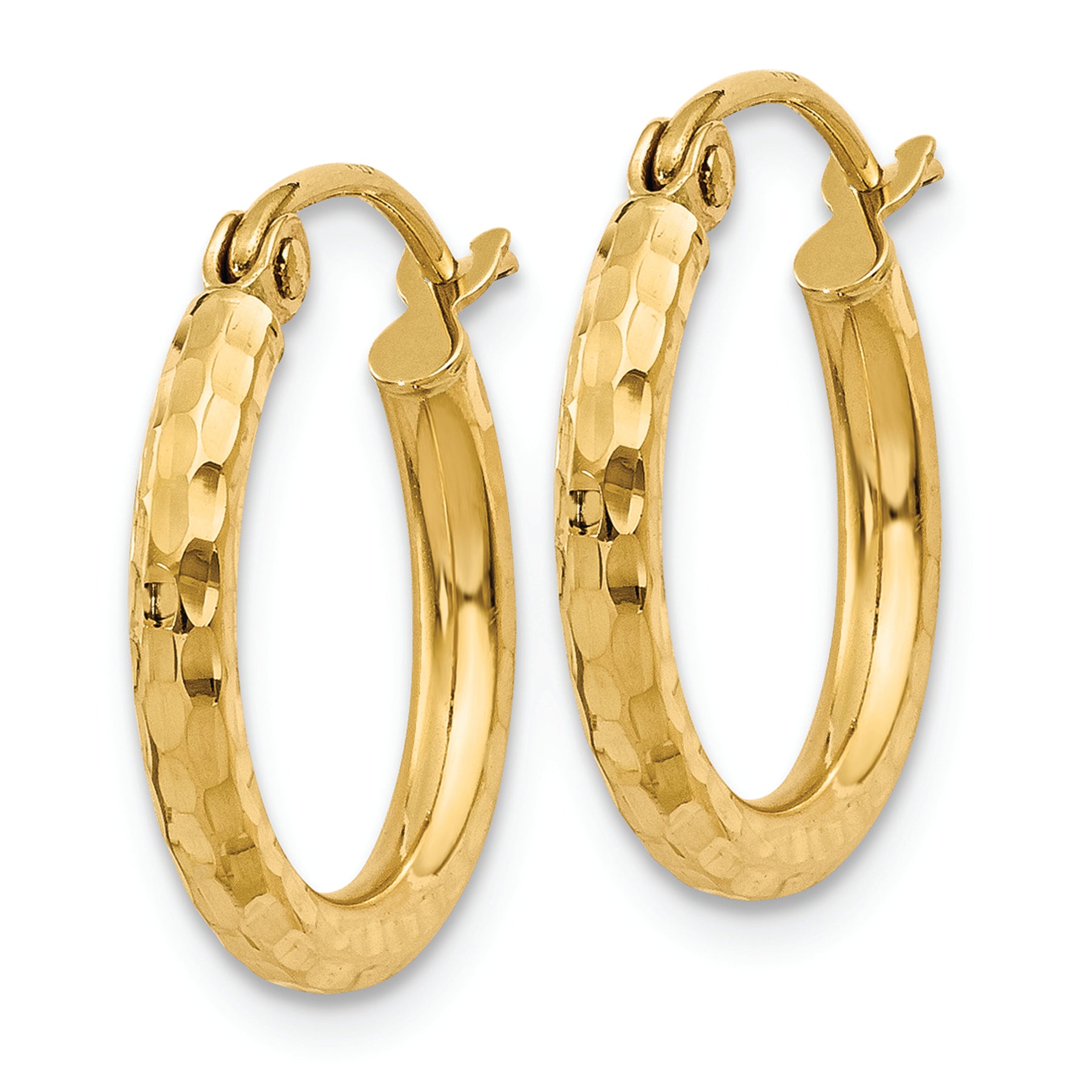14k Diamond-cut 2mm Round Tube Hoop Earrings